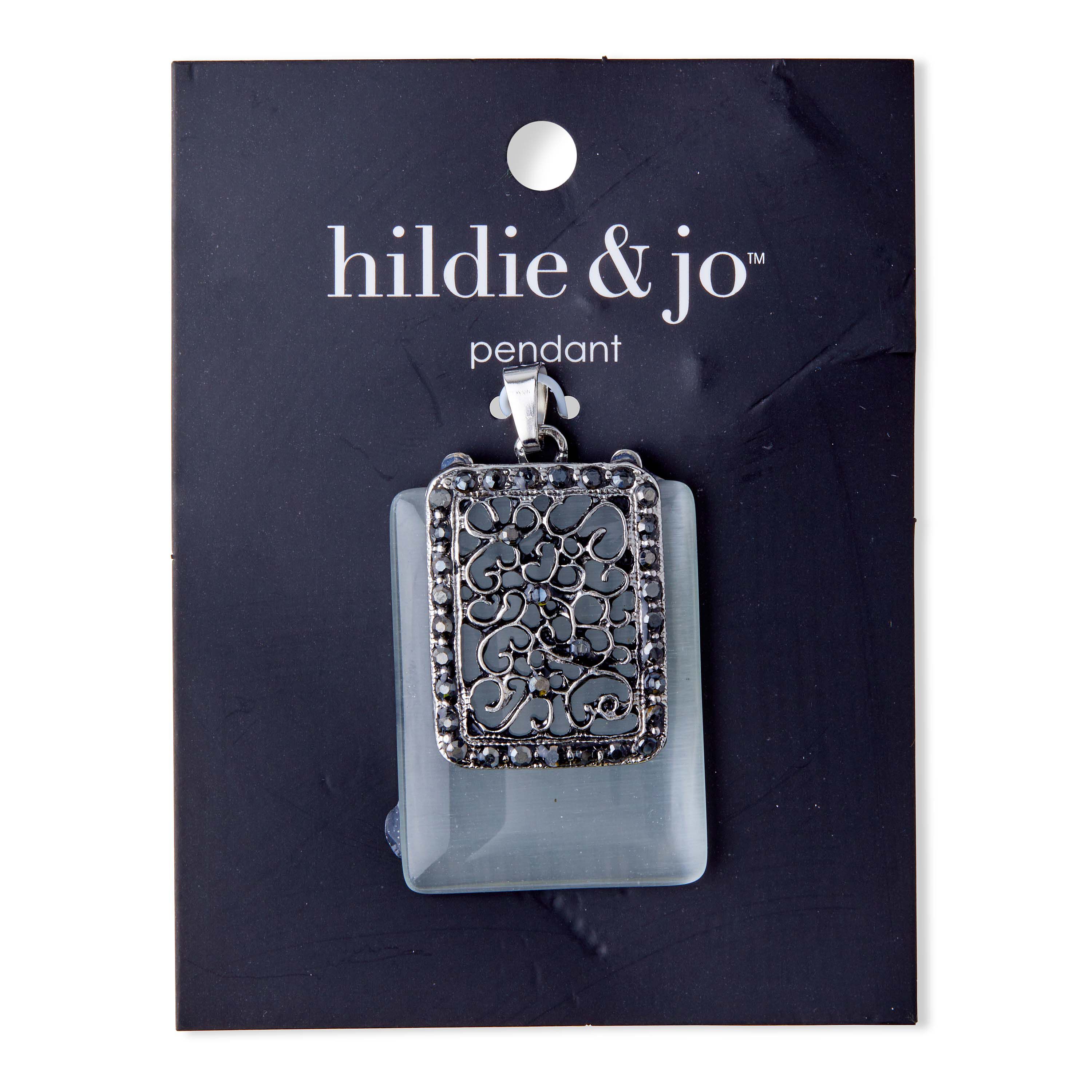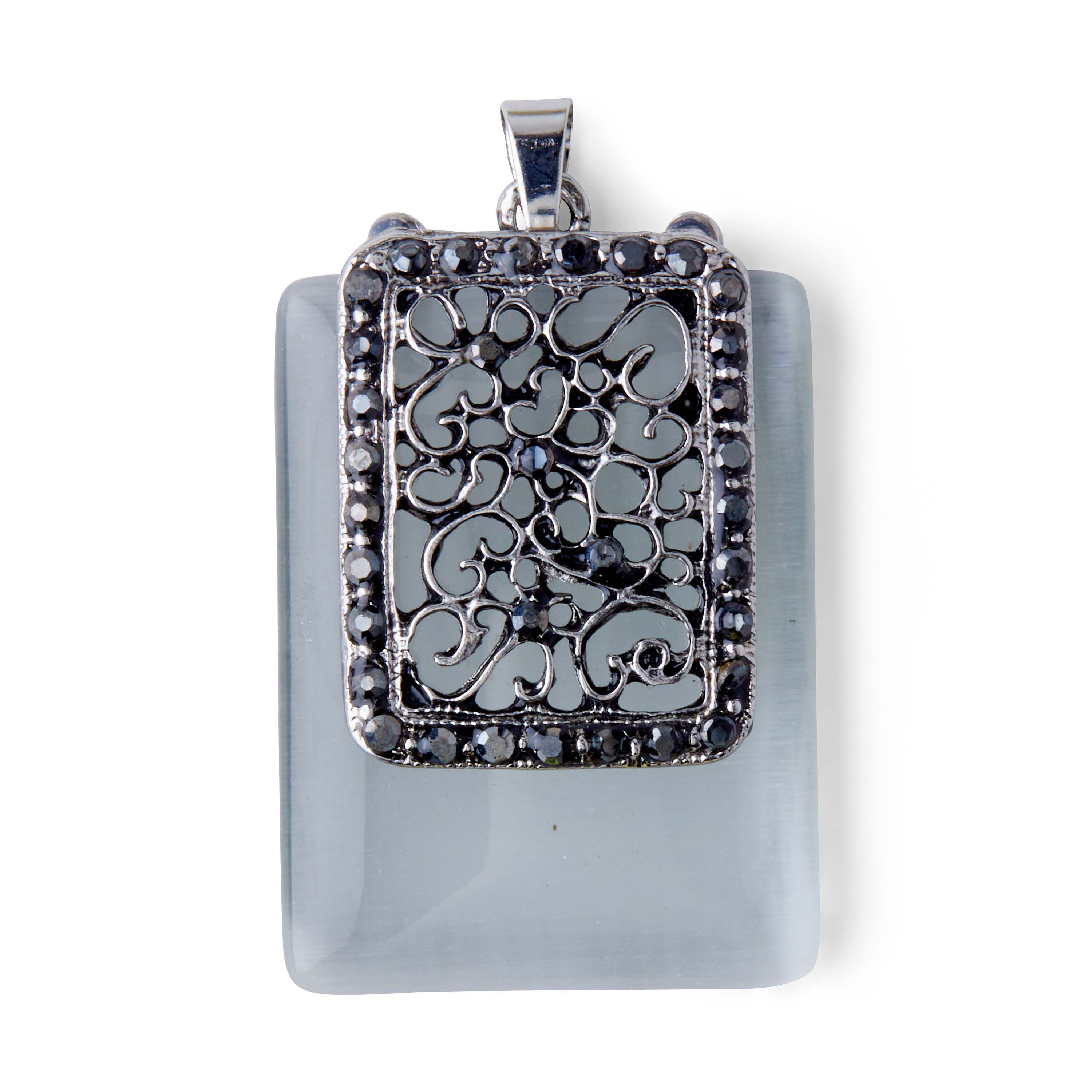 Personalize a DIY jewelry project using this hildie & jo Boulevard Rectangular Antique Silver Pendant. This antique silver finished pendant is set on top of a piece of slightly larger gray glass and includes a smooth silver bail. The pendant has a scroll pattern and includes a silver beaded edge with crystals located throughout. Add this pendant to a bracelet, necklace, keychain, or other project. This pack includes one pendant made of zinc alloy and glass.