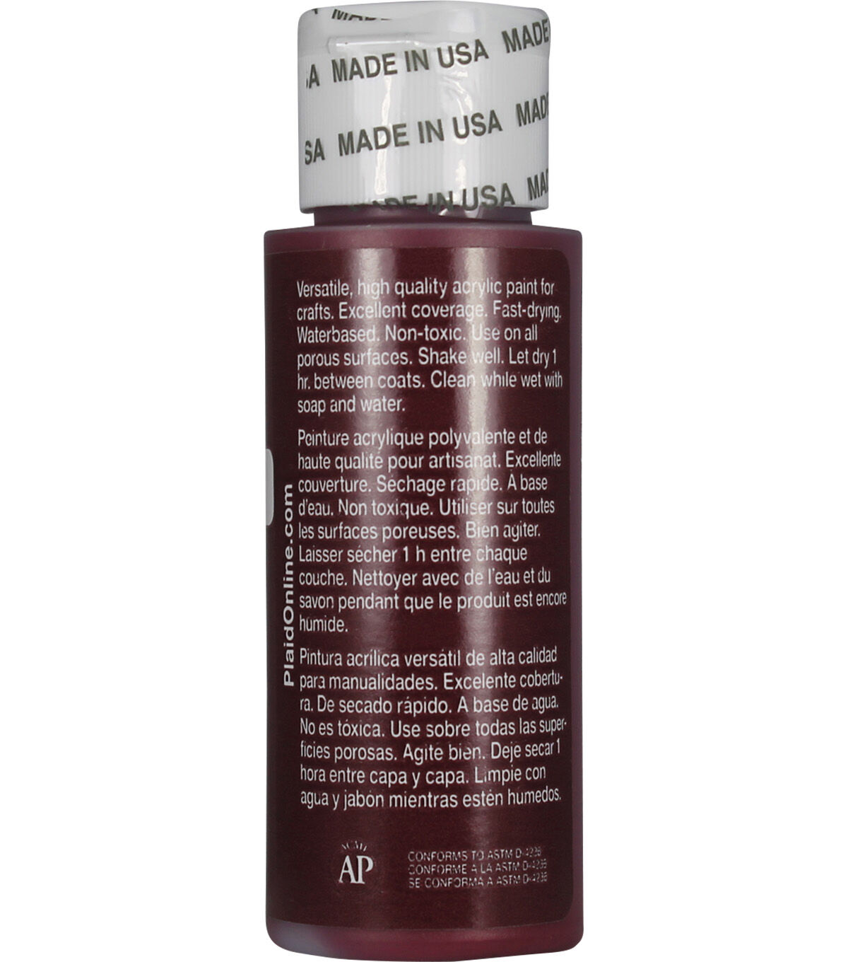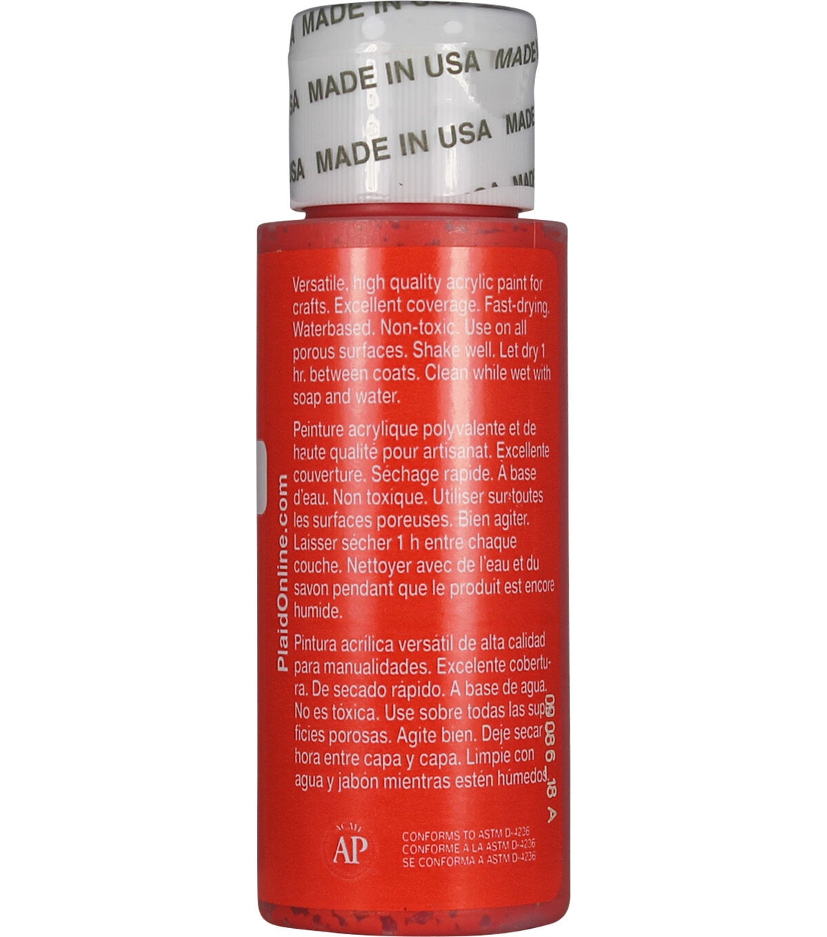 Apple Barrel Colors are the crafter's choice for quality, selection, and value. The versatile, all-purpose acrylic paint is ideal for craft projects of all kinds and works on most porous surfaces: wood, plaster, tin, craft foam, Styrofoam, terracotta, and more. Offering excellent coverage, Apple Barrel dries quickly to a soft matte finish. All colors are AP-certified non-toxic and water-based for easy soap and water cleanup.