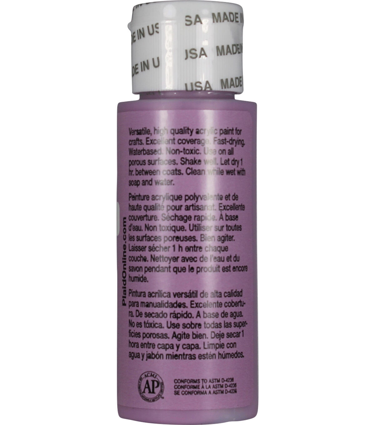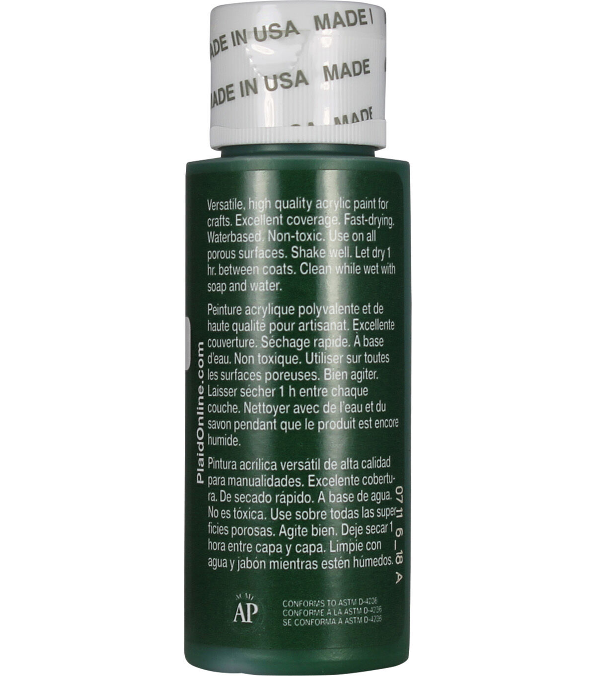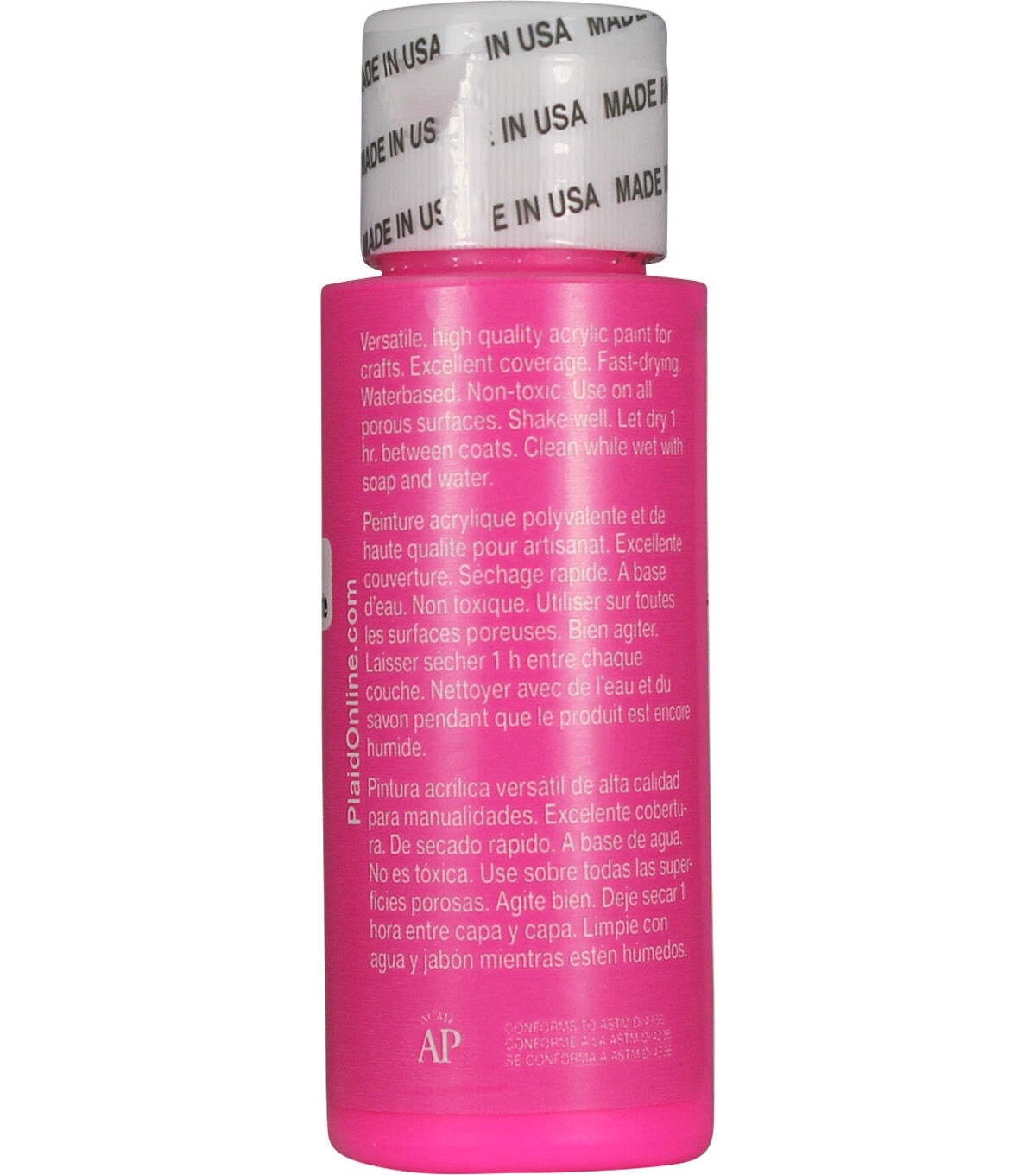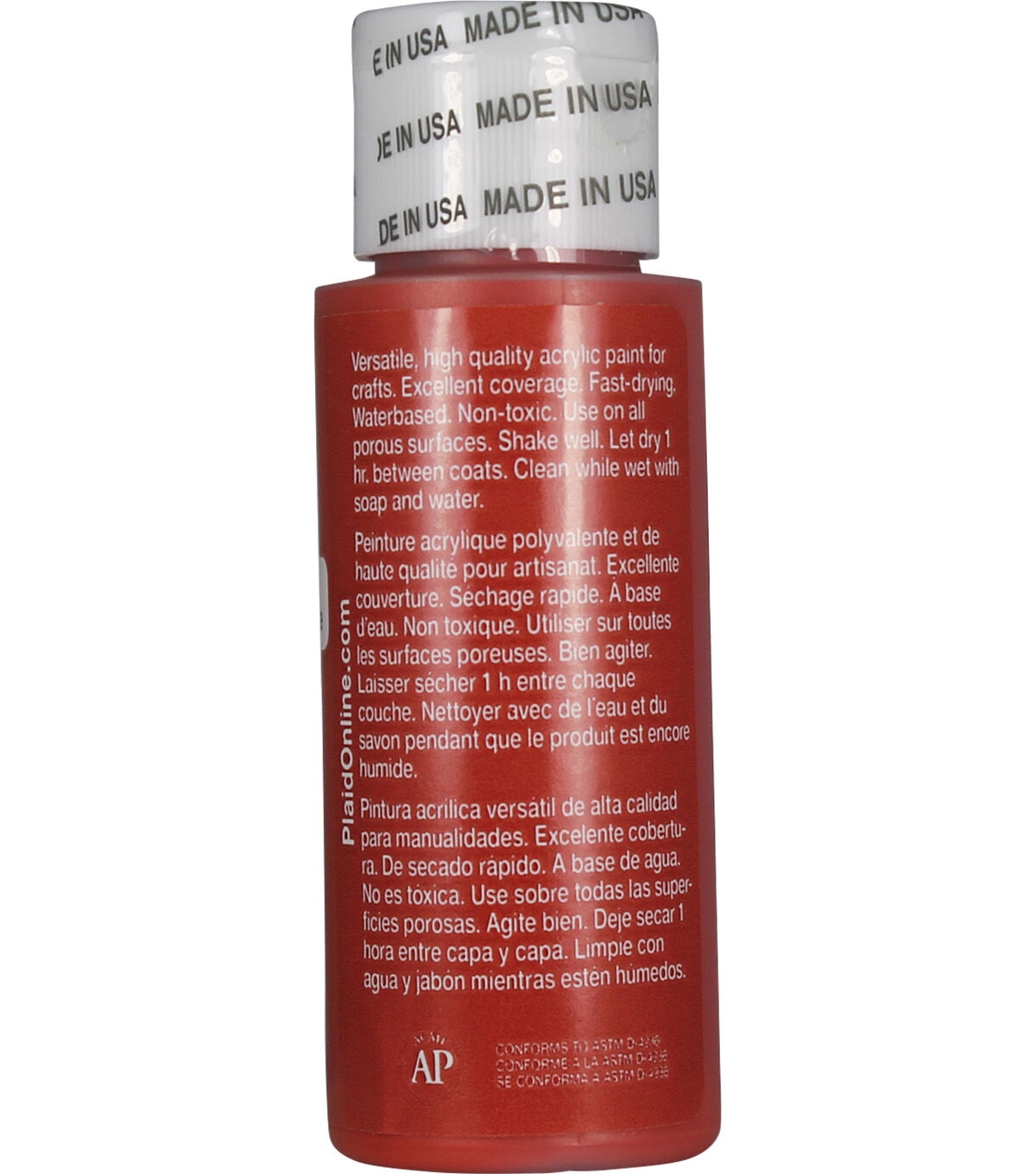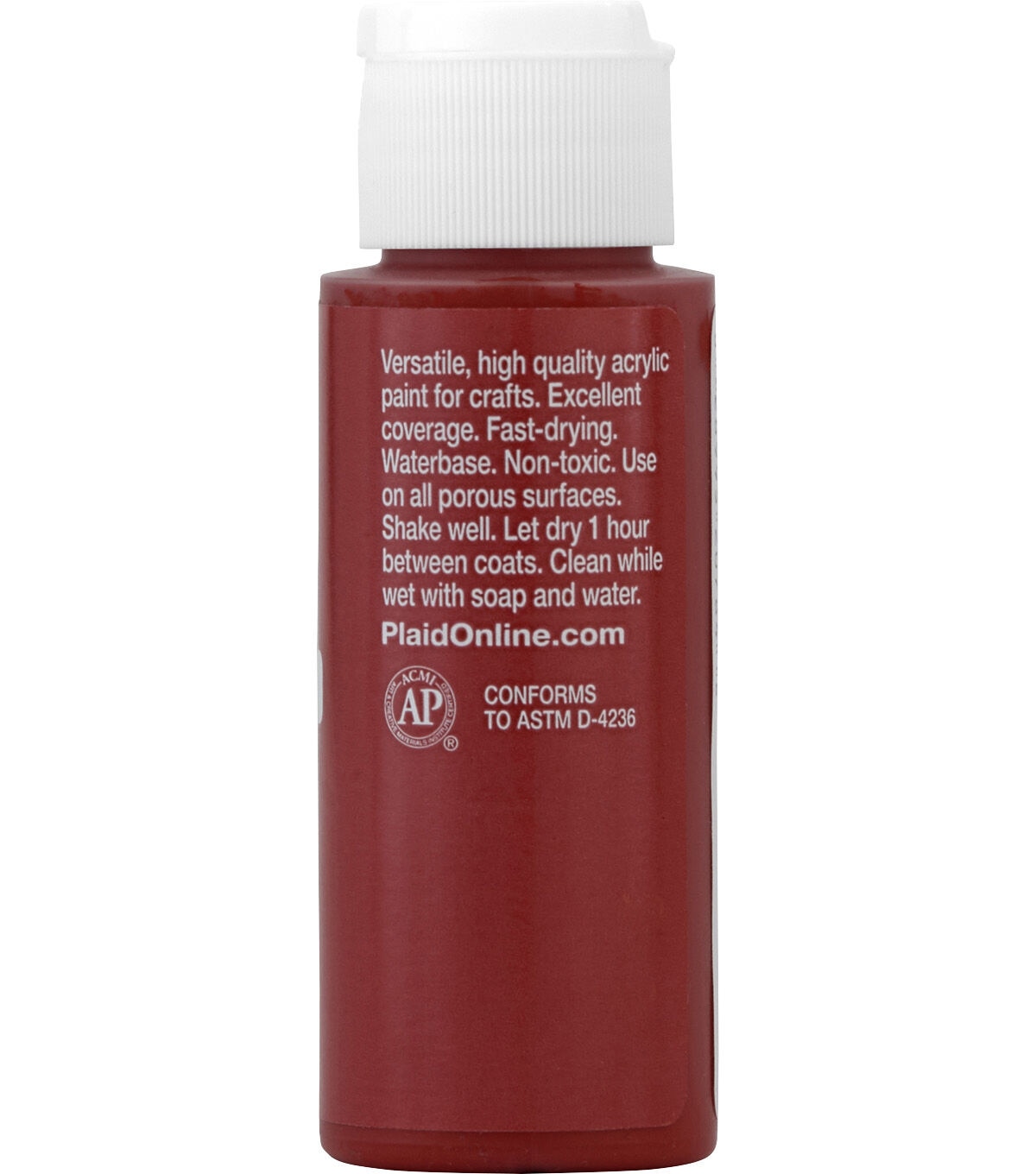 Apple Barrel Colors are the crafter's choice for quality, selection, and value. The versatile, all-purpose acrylic paint is ideal for craft projects of all kinds and works on most porous surfaces: wood, plaster, tin, craft foam, Styrofoam, terracotta, and more. Offering excellent coverage, Apple Barrel dries quickly to a soft matte finish. All colors are AP-certified non-toxic and water-based for easy soap and water cleanup.
