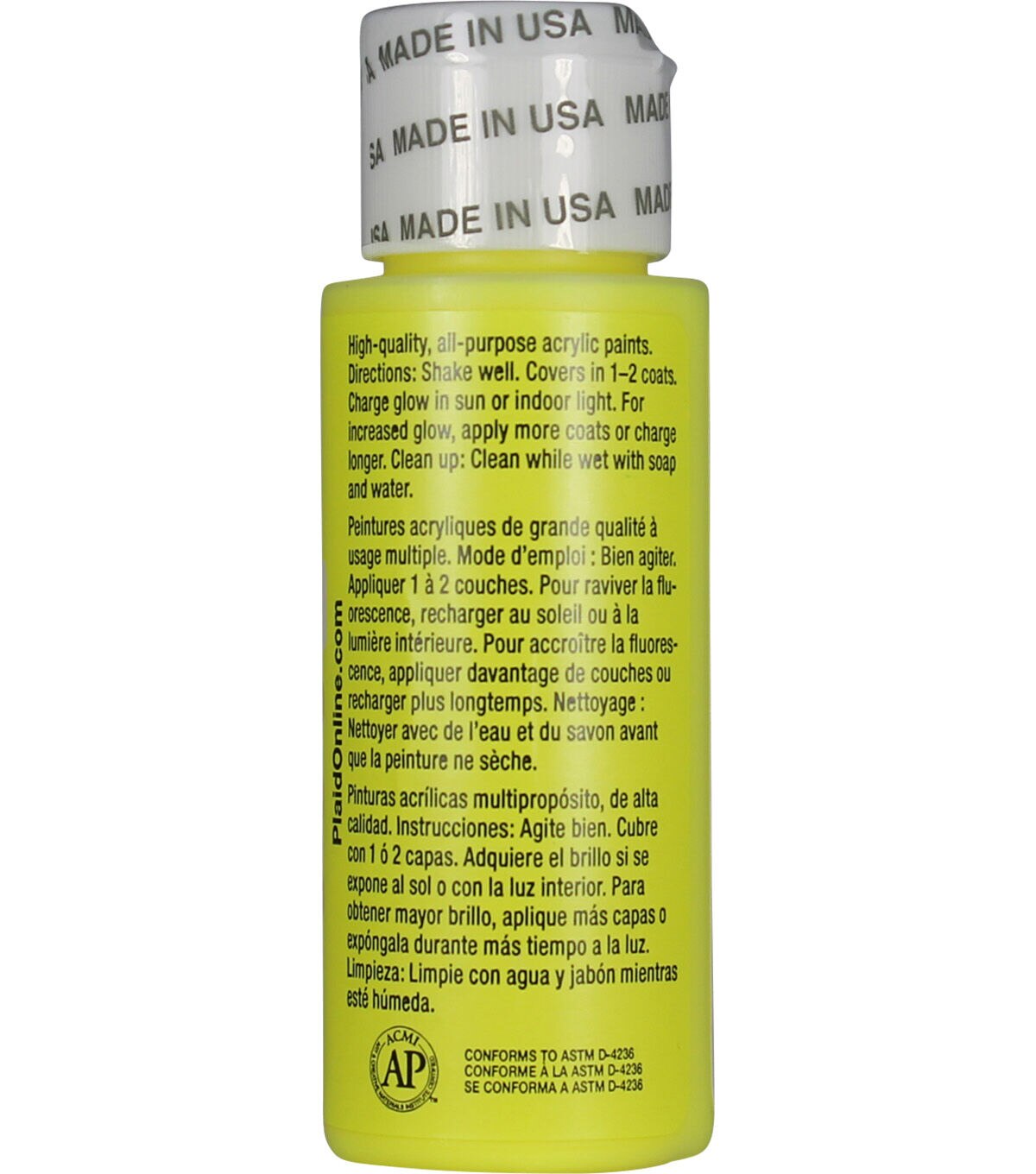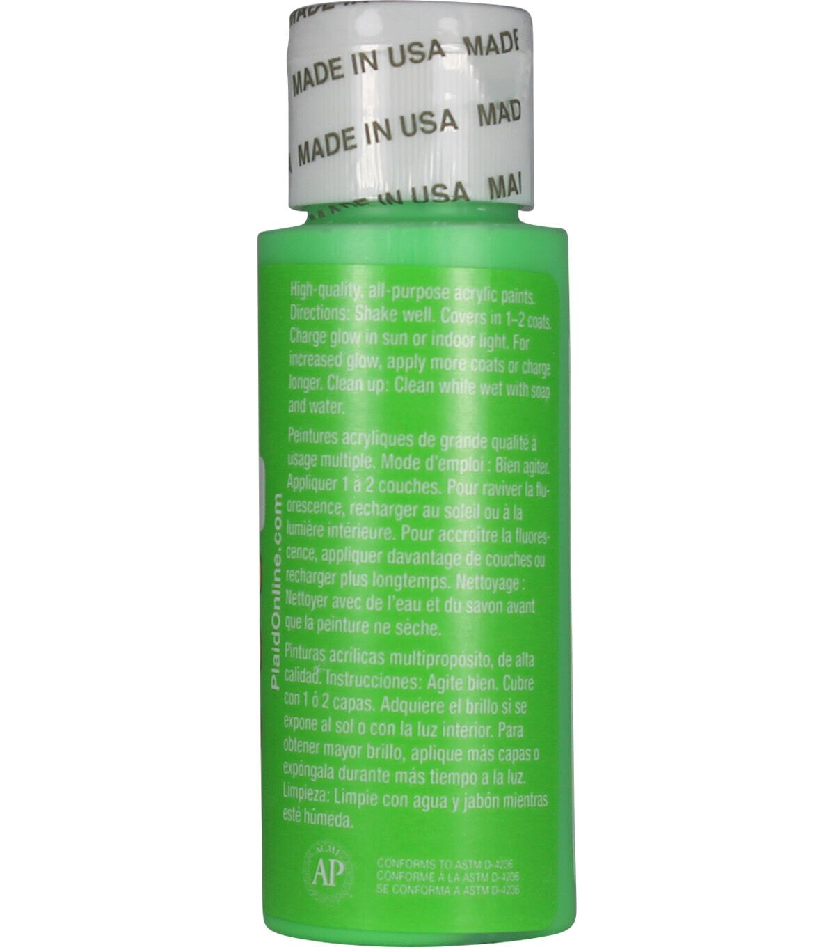 Apple Barrel Gloss Glow-in-the-Dark acrylic paint provides an assortment of easy-to-use, beginner-friendly acrylic paints. Add a glowing effect to any project—from children's crafts to your home decor! These acrylic paints go on smooth and dry to a bright, glossy enamel-style finish. The high-quality formula is perfect for both indoor and outdoor projects, and provides exceptional coverage on anything from tin to terracotta. This certified non-toxic, water-based paint works well on both porous and non-porous surfaces and cleans up easily with soap and water.