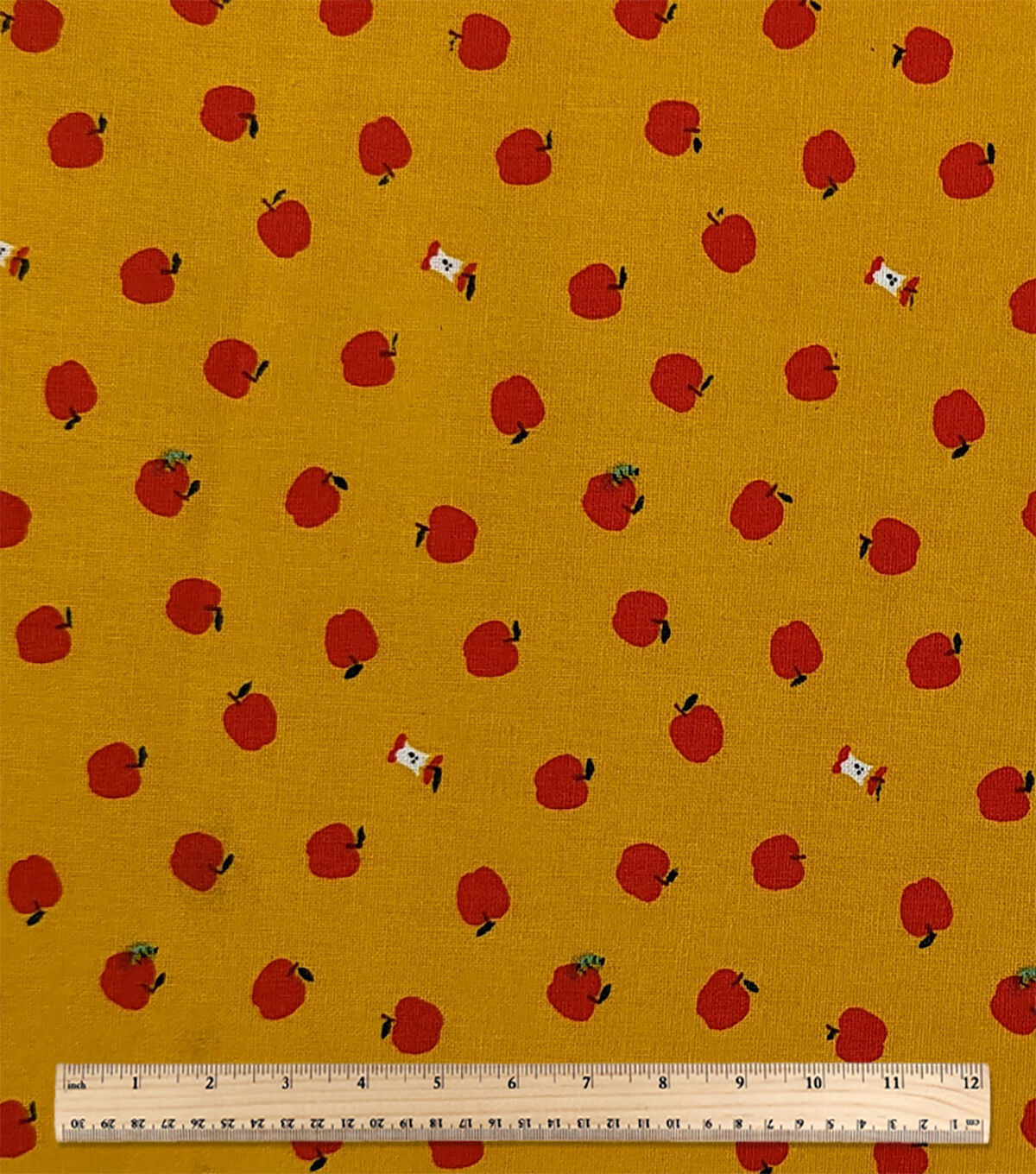• Apples On Yellow Novelty Cotton Fabric by POP!