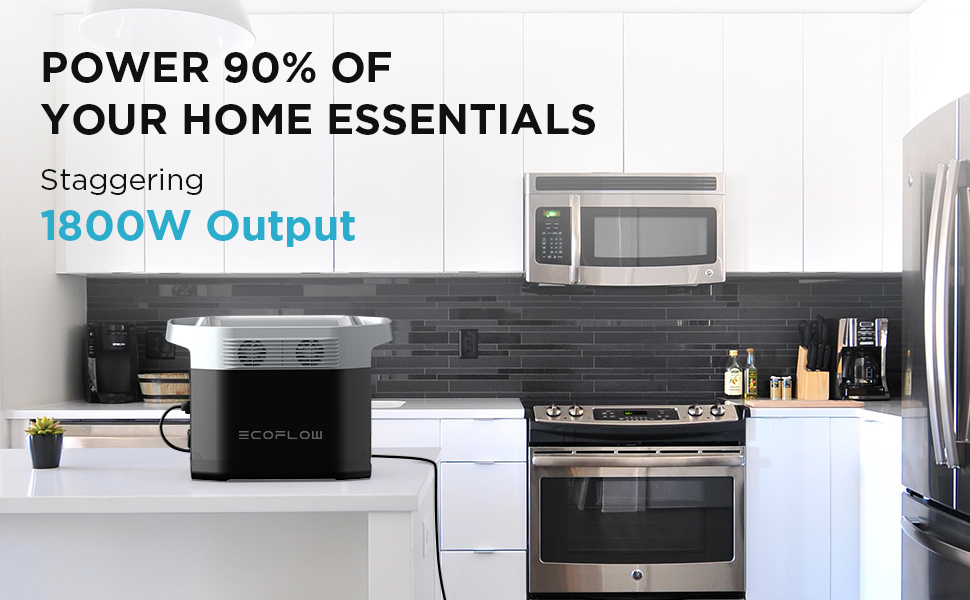 EcoFlow DELTA is equipped with 13 different outlets for a variety of devices. This combined with a 1800W output means you’re able to power 90% of essential home appliances with ease.