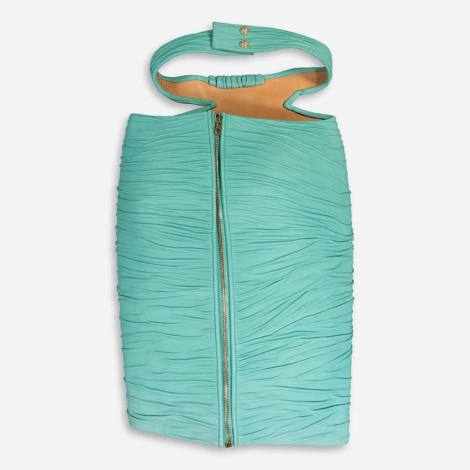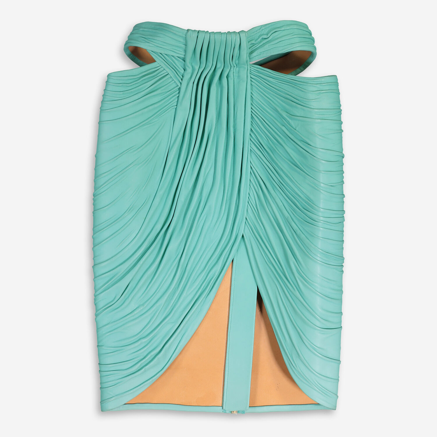 • Aqua Leather Midi Skirt