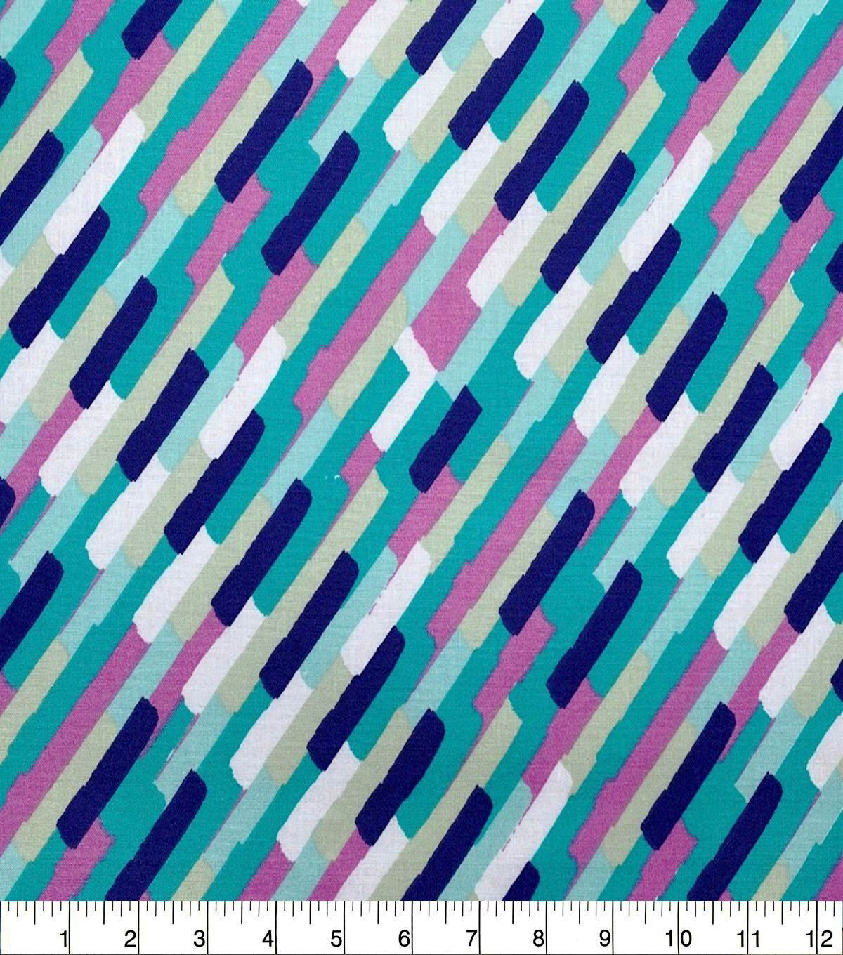 Aqua & Pink Bias Stripes Quilt Cotton Fabric by Quilter's Showcase