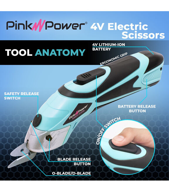 - Electric scissors easily cut through fabric, leather, metal, paper, cardboard and more. Great for craft projects, cutting fabric, dressmaking, sewing, quilting, scrapbooking or just opening packages.