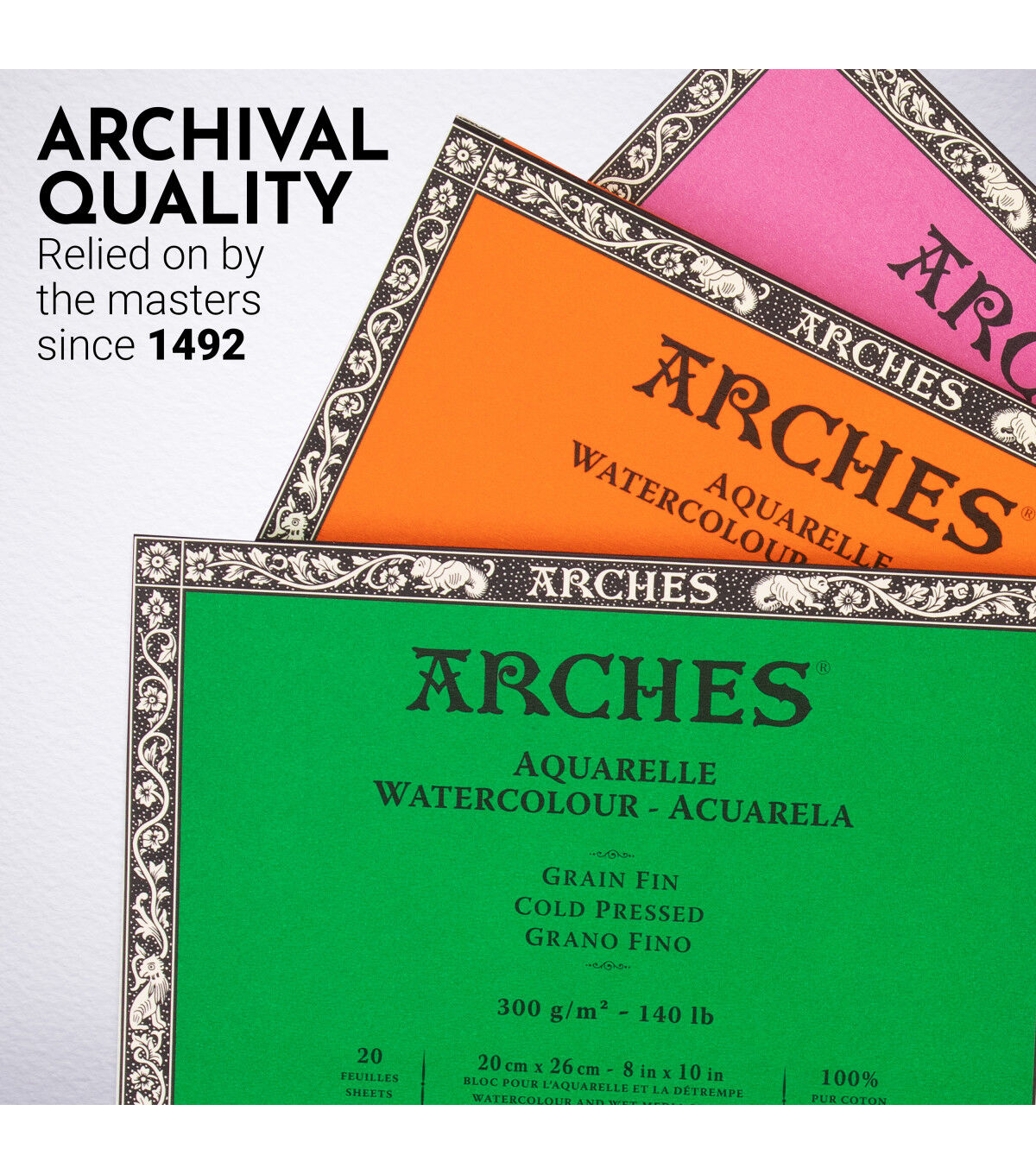 Arches has a tradition of creating high-quality papers for over five centuries. This watercolor paper is superior quality, mold-made paper from the Arjomari Mills of France. This convenient block is glued on all four sides, keeping your surface taut and allowing you to create artwork instantly. Once it's dry, simply remove with a dull knife or the end of your paintbrush. Rough watercolor paper is ideal for artists who enjoy wet-on-wet techniques; with the highest rate of absorbency, this paper can take several layers of pigment.