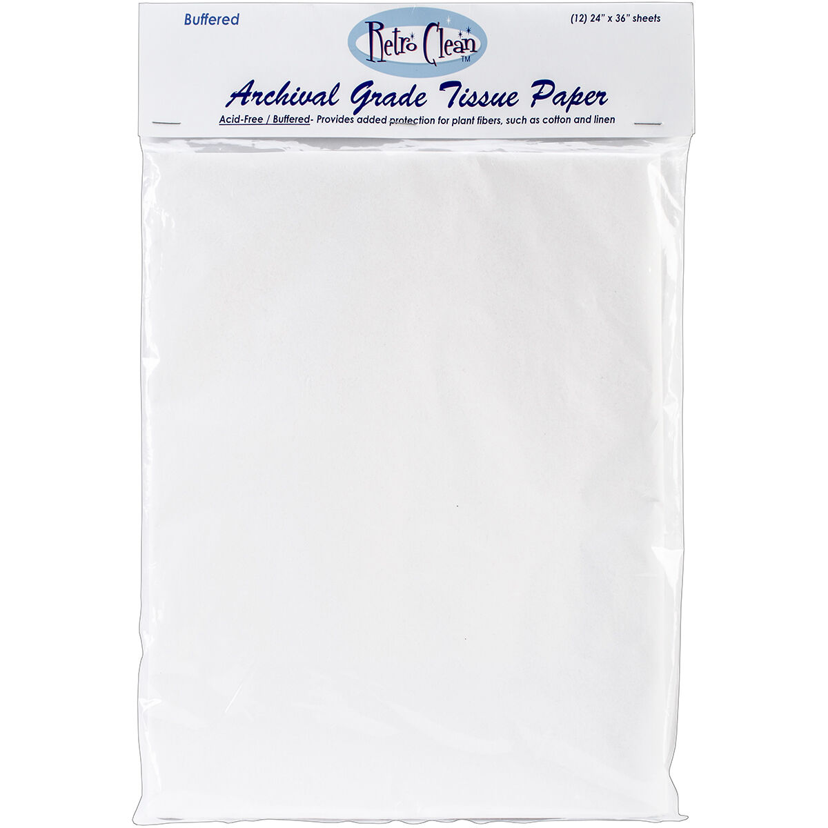 Use the Retro Clean Buffered Archival Grade Tissue Paper for interleaving prints and photos or wrapping quilts, gowns, linens and other textile items. These acid-free tissues are ideal for use with fabrics made of plant fibers such as cotton. This pack contains twelve 24 x 36-inch buffered tissue paper sheets.