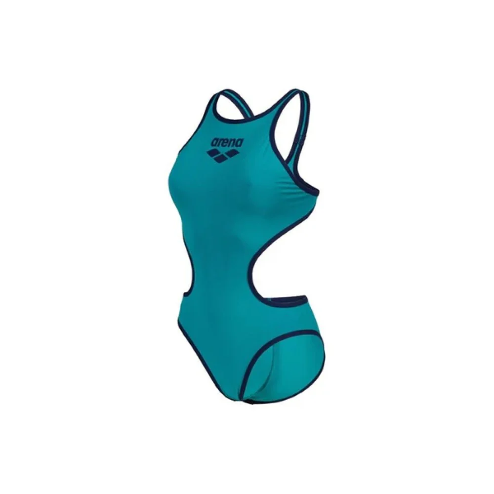 Slip into this sleek womens one-piece for training or fitness swimming. Our arena One Big Logo swimsuit is made with arenas unique single piece construction that reduces seams and increases comfort and glide. This sporty style has a maxi version of our three diamond logo and name and contrasting trim that outlines the figure. We love its athletic vibe and eye-catching shape.