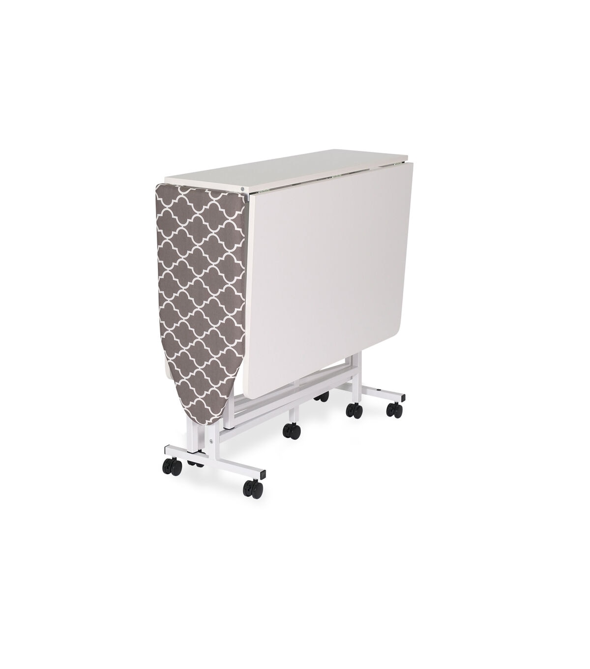 - Built-in 27”x 12” folding ironing board for easy pressing