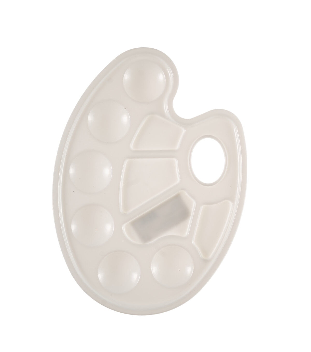 Suitable for all water-based media, this paint tray has six round wells and four rectangular wells. It has the contour of a traditional palette and features a thumb hole for an easy, comfortable grip.