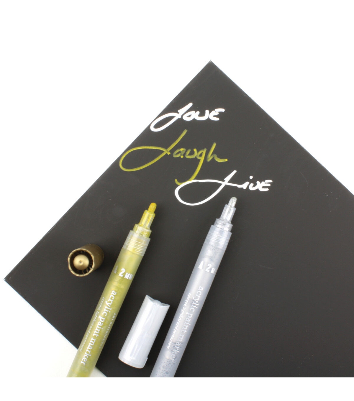 These pigmented, water-based acrylic paint markers make opaque, lightfast marks on almost any surface including canvas, paper, wood, metal and glass.