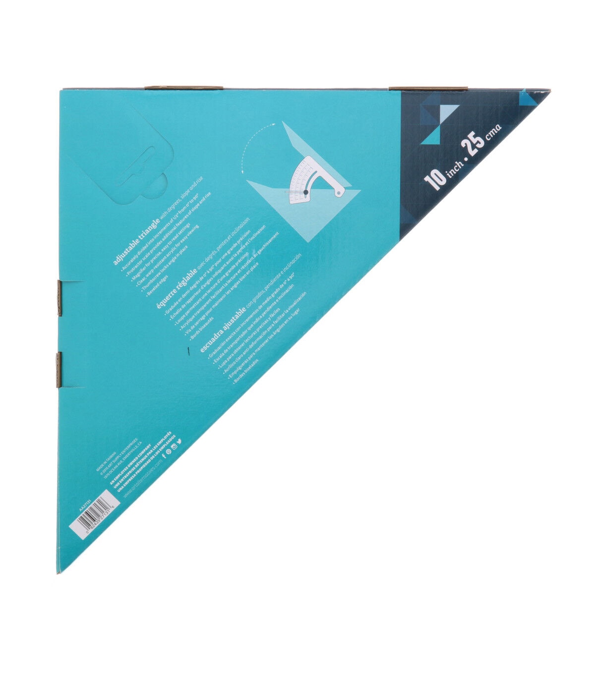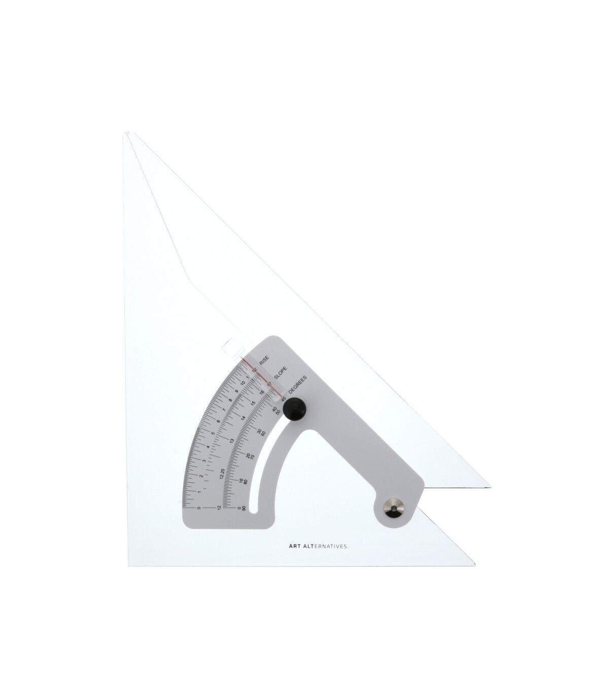 This is a precision tool for drawing lines at specific angles, an essential for drafting, design, woodworking and DIY projects. With clear construction for easy viewing of your material, this adjustable triangle is accurately divided into increments of 1/2° from 0° to 90°. This triangle has a thumbscrew that locks the angle securely in place so that you can continue to work without losing your place.
