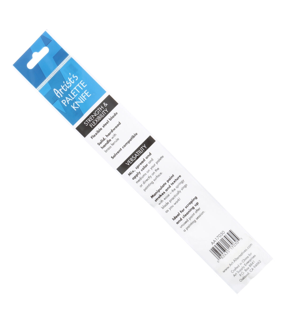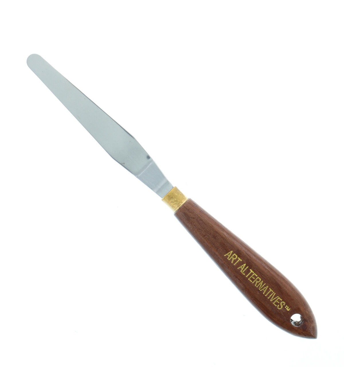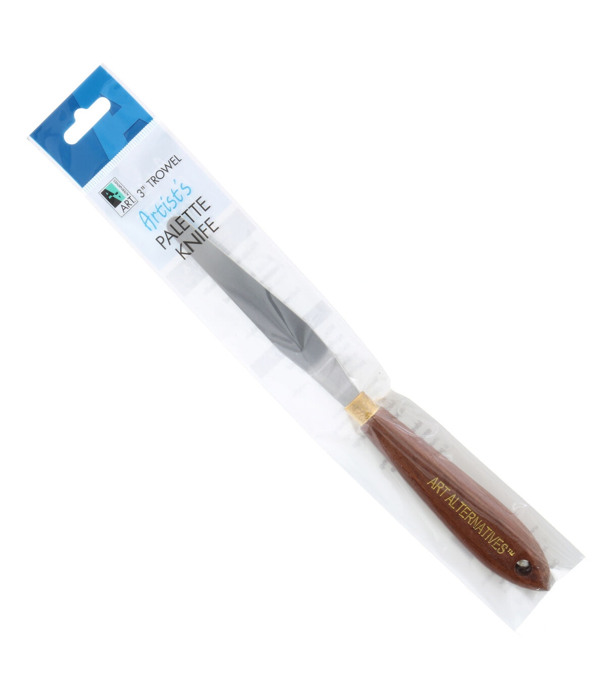 Use this Art Alternatives Artist's Trowel Palette Knife to mix and apply even the thickest media, and manipulate texture with ease. With a springy blade, this palette knife is also useful for scraping and cleaning unused paint after a painting session. It features a flexible, solvent-compatible steel blade and a solid, hardwood handle with brass ferrule.