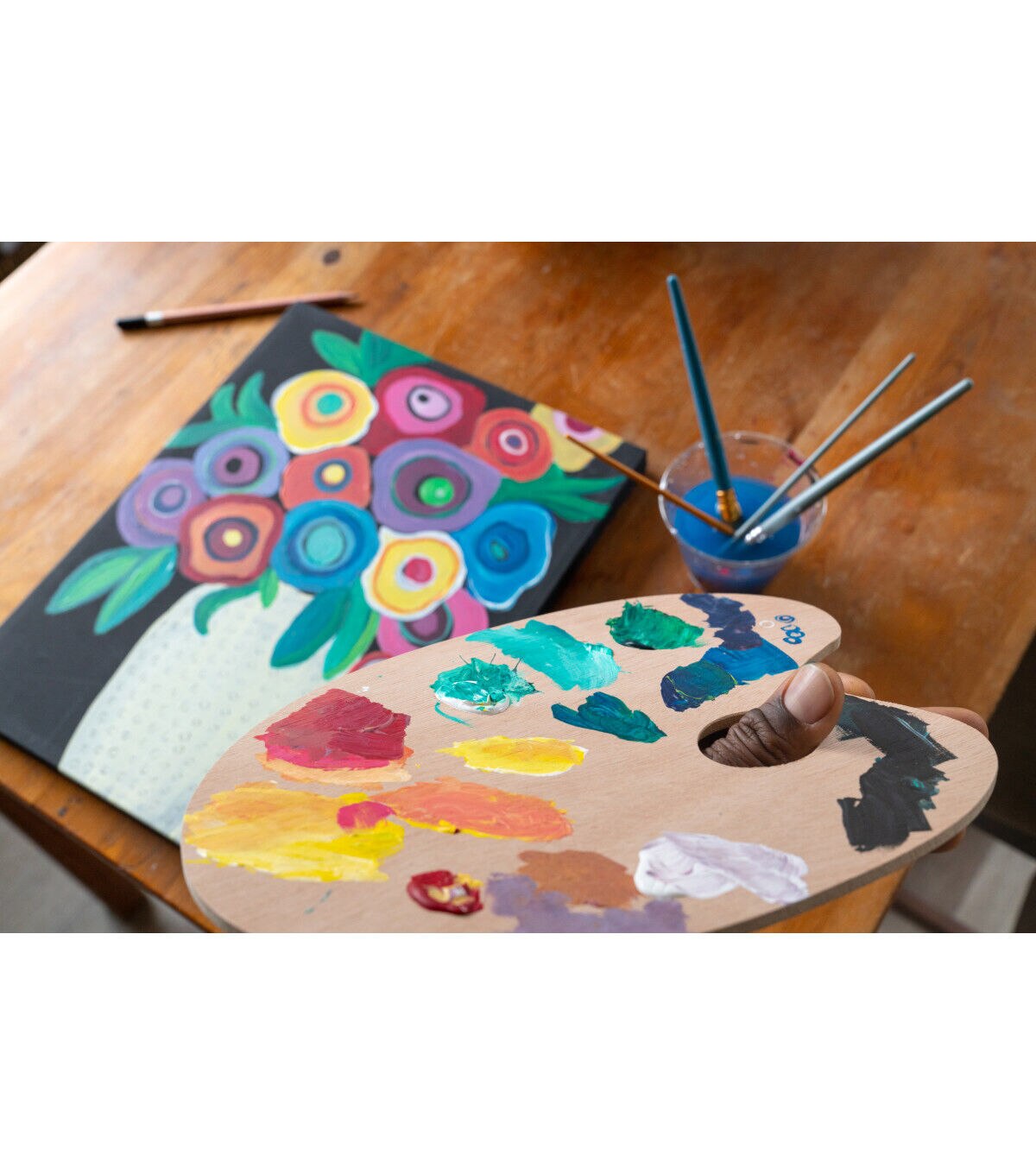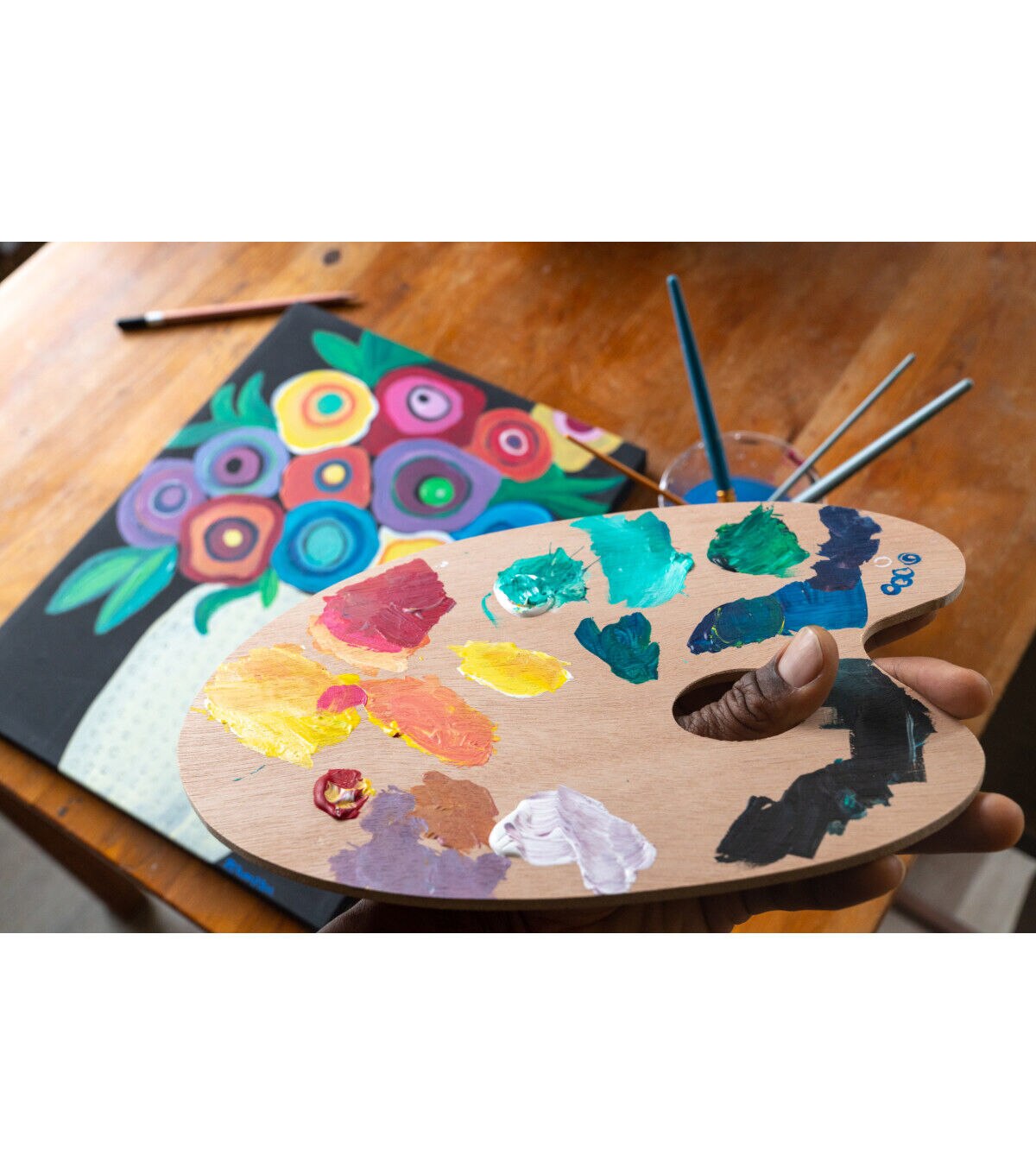 Keep your palette organized, accessible and at arms length. This traditionally shaped oval palette is light-weight, durable and economical.