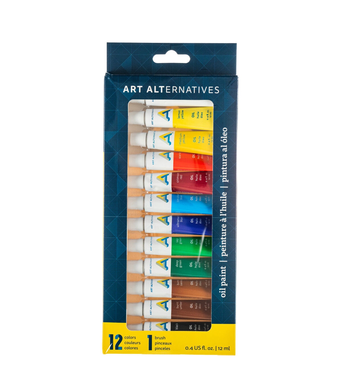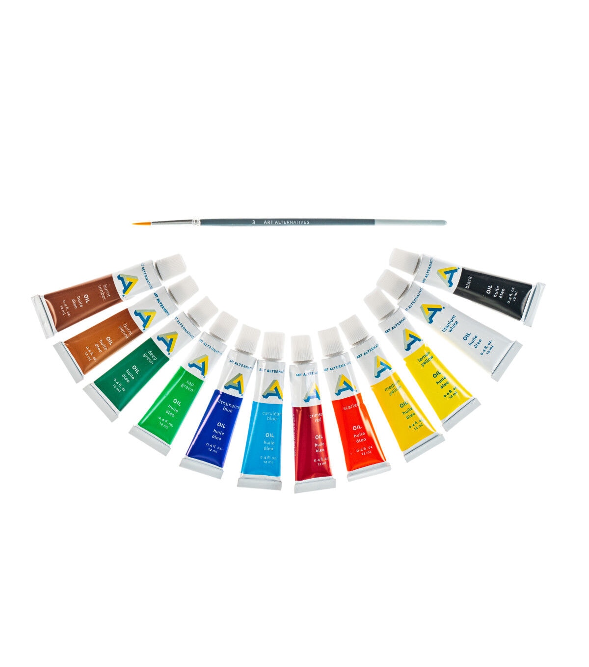 - Ideal for beginners, students and value-conscious artists, 12ml tubes of oil paint, The 12-Color Set includes titanium white, lemon yellow, medium yellow, scarlet, crimson red, ultramarine blue, cerulean blue, deep green, sap green, burnt sienna, burnt umber, black and a paint brush, Art Alternatives makes artistic expression affordable for anyone who feels inspired to do it