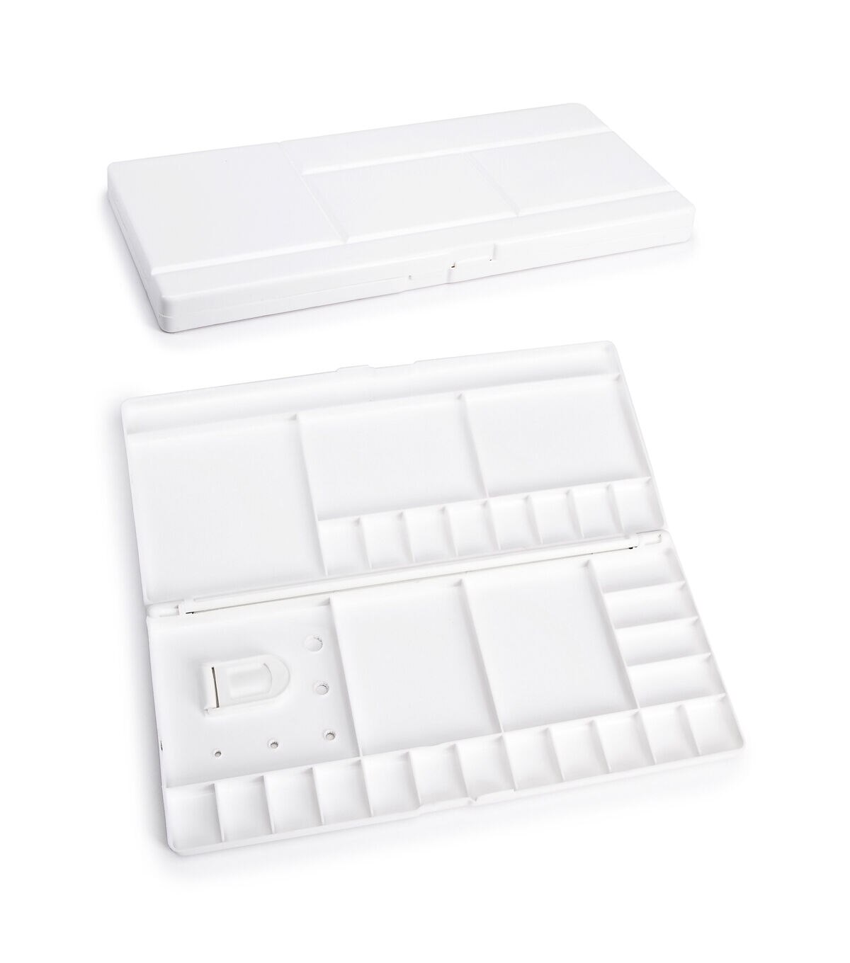 ART ALTERNATIVES-Folding Palette: Large. Can be used with all media! It folds and locks for travel or storage; has five mixing areas; twenty-eight color wells and has five brush rests. This package contains one 10-1/2x10-1/4 inch (when unfolded) palette. Imported.