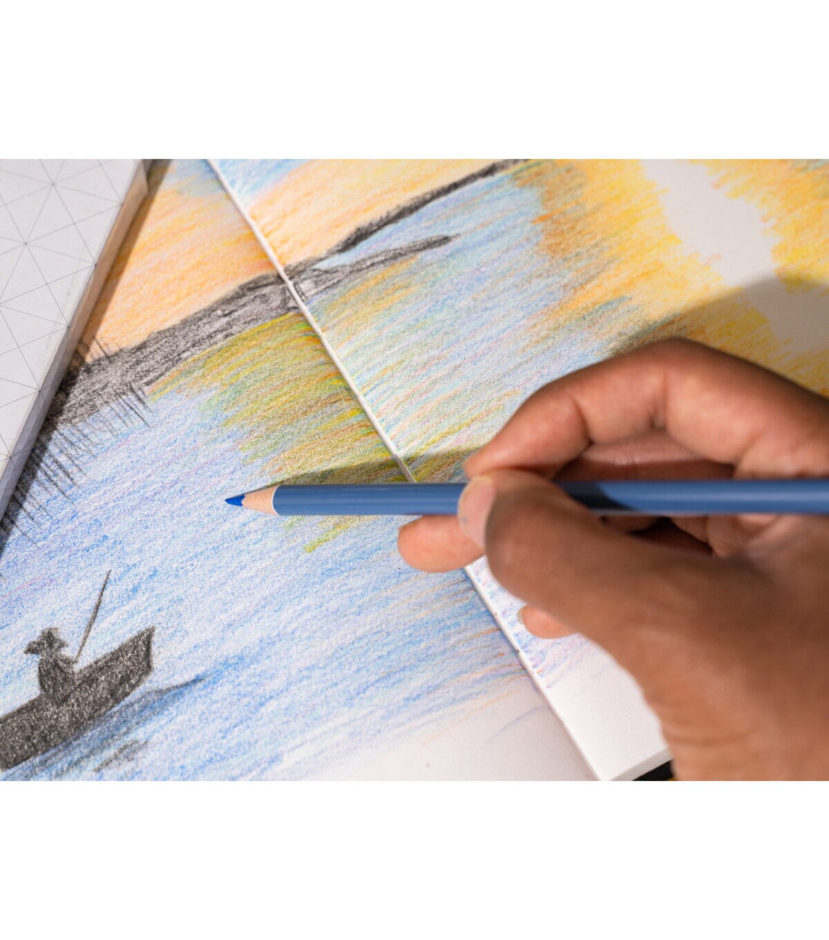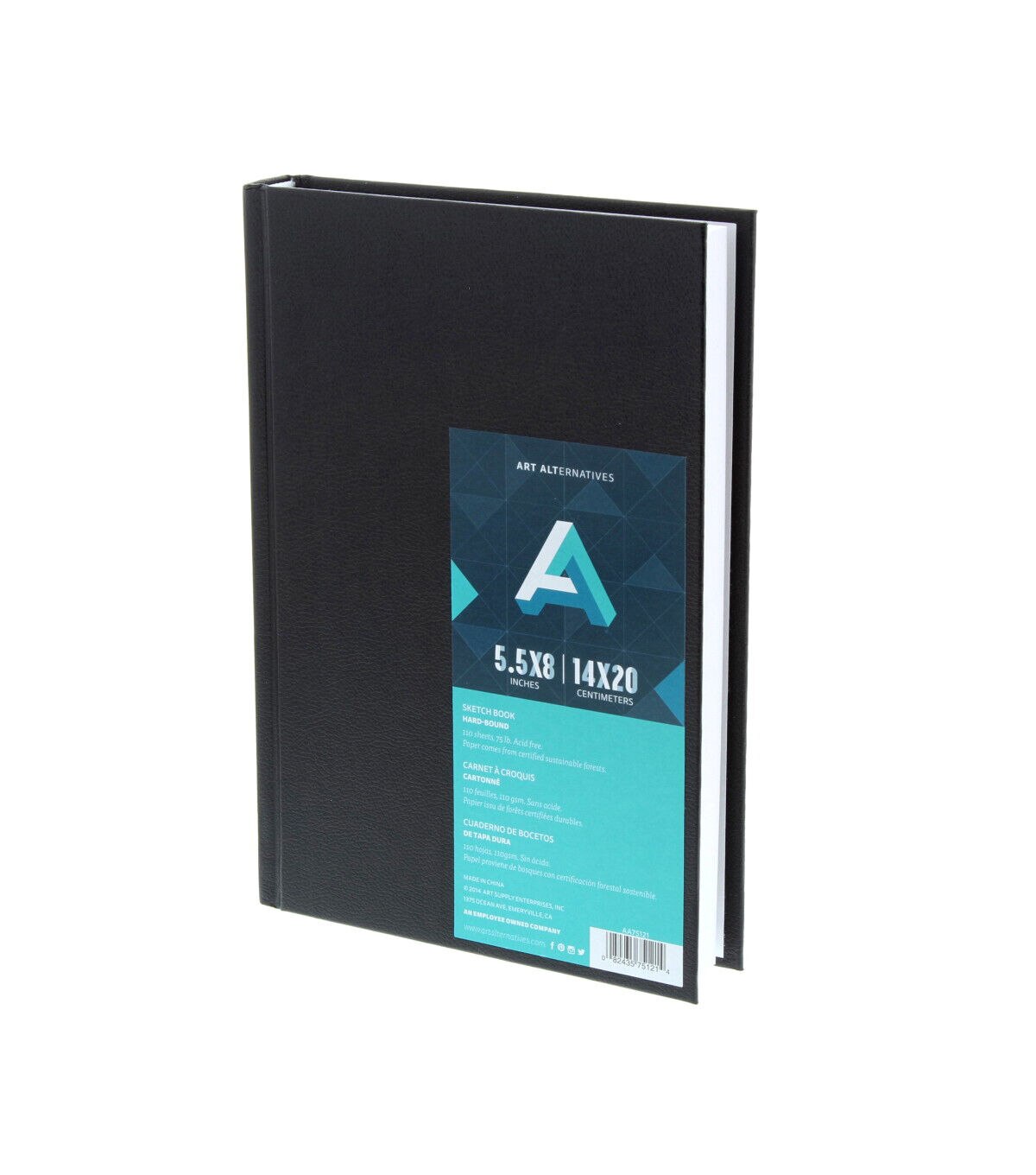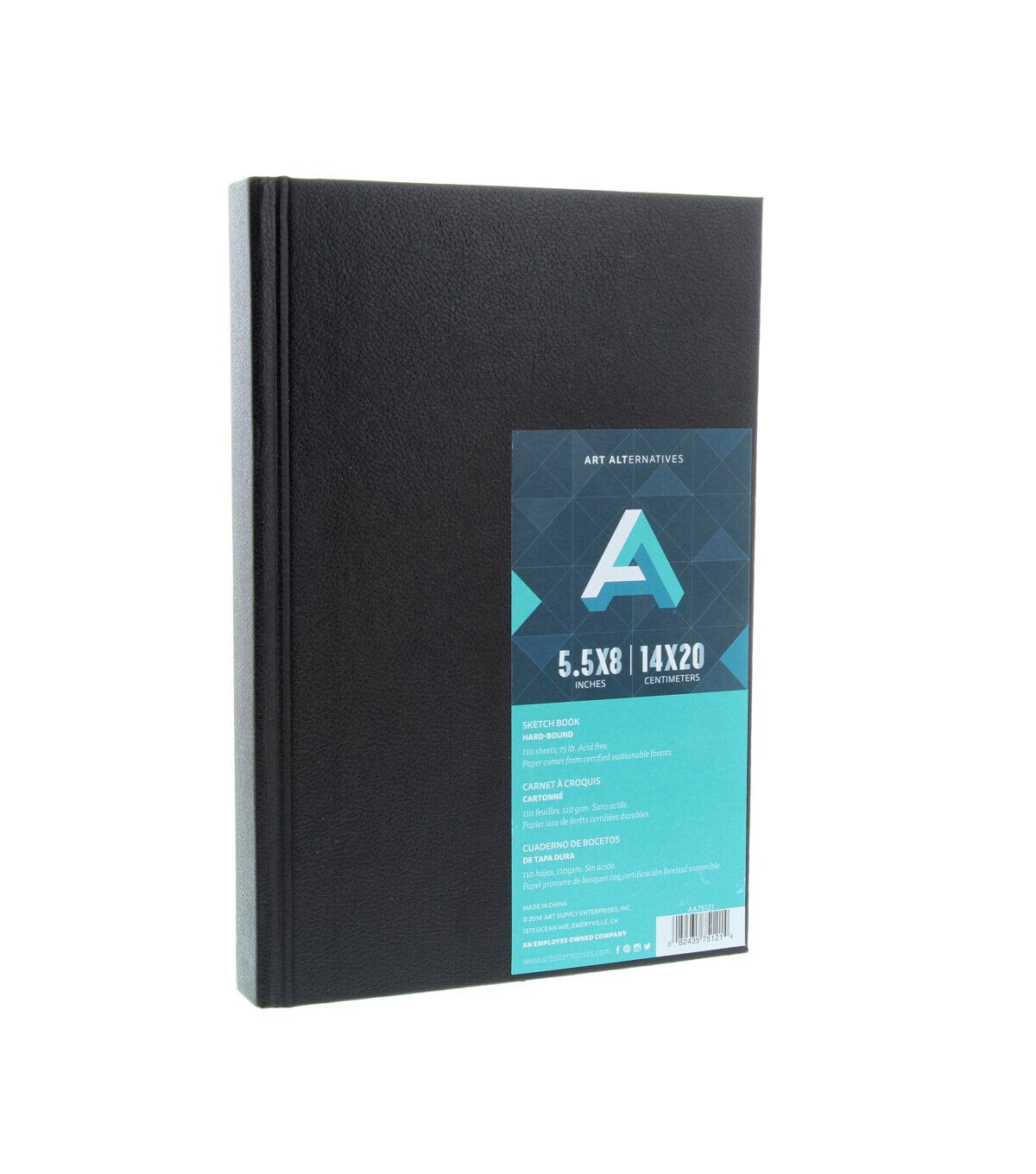 Classic hard-cover sketch books are an artist's essential. This sleek black sketch book is ideal for sketching, drawing and writing with any dry media. When open, your sketch book lies flat so that drawings can flow across the pages easily.