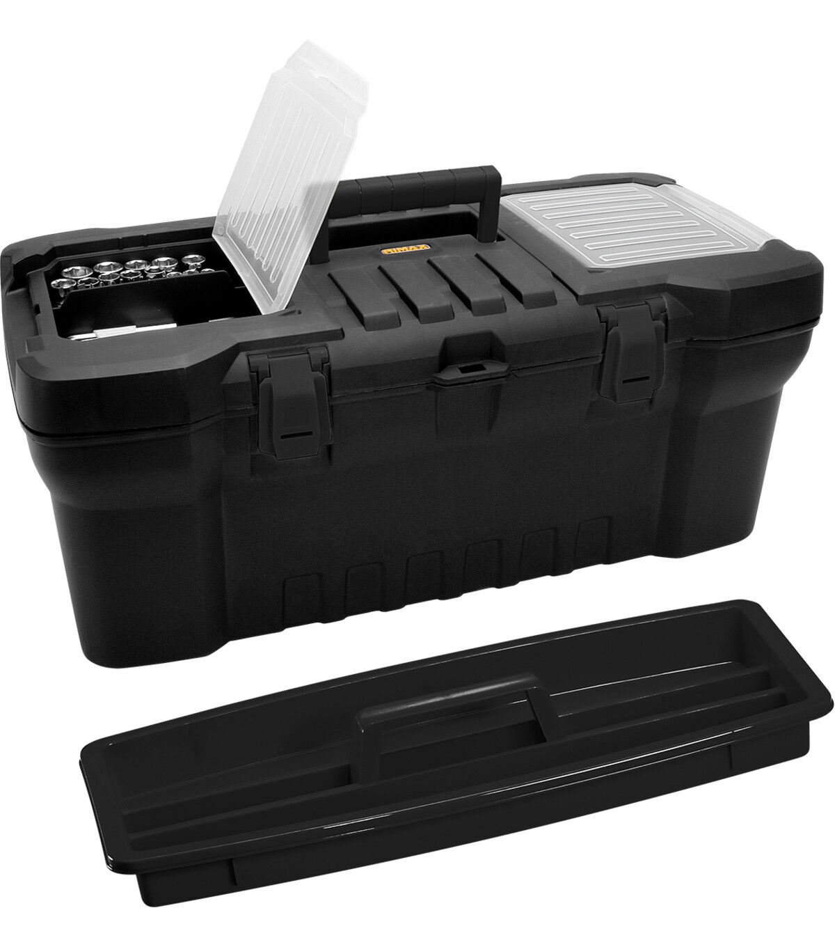 Form and function come together wtith this heavy-duty tool box. Made of durable black plastic, it is specially molded for added strength. Thick, strong handles and clasps keep your supplies safely contained and easy to carry. The boxes are lockable and ample storage space.