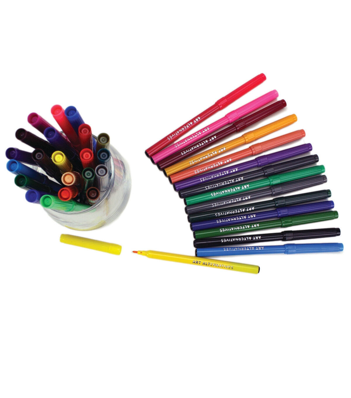 This 36 Color Marker set gives you the artistic freedom of a wide range of colors for a small price. With fine tips, they offer unparalleled control of your line. This set of student-grade markers is perfect for use on paper, board, or canvas. The tips are ideal for drawing, illustrating, and coloring. The markers are non-toxic.