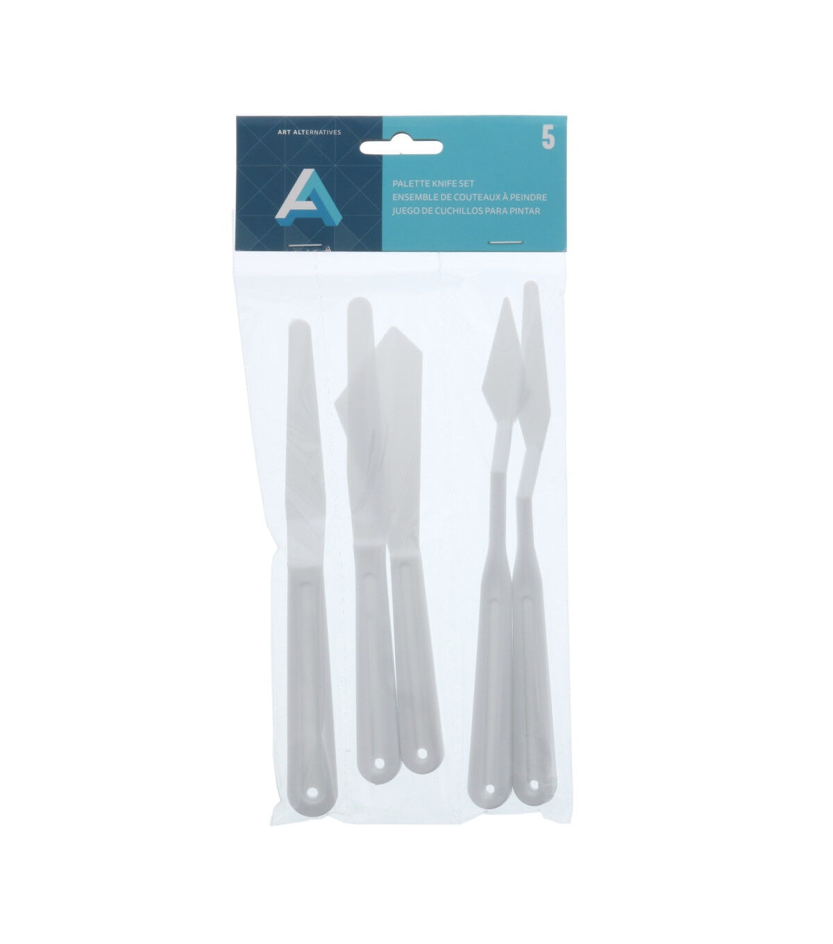 These durable molded plastic knives are an affordable choice for all artists. A safe alternative to metal knives they are non-staining and easy to clean. The set includes one each; straight, trowel and diamond trowel palette knives as well as narrow trowel and wide angle painting knives.