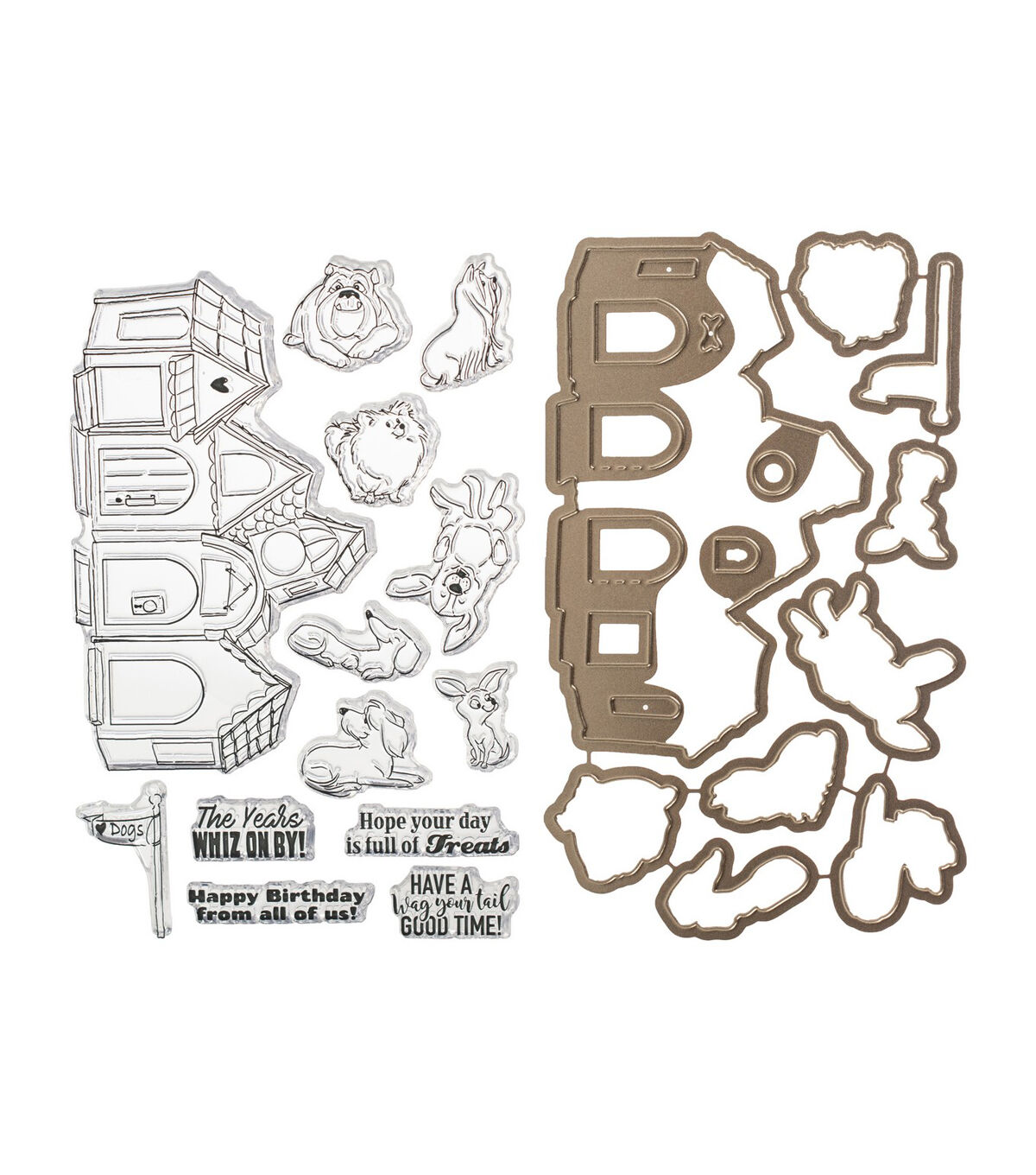 Quickly and easily die-cut shapes from patterned paper, cardstock and other thin materials! Designer dies are a cut above the rest. This package contains Dog House Cubbies: a set of 13 stamps on a 4x6 inch backing sheet and 9 metal dies measuring between .75x1 inches and 2.68x4.25 inches. WARNING: Choking Hazard. Not suitable for children under 3 years. WARNING: May contain items with sharp edges. Handle with care. Made in USA.