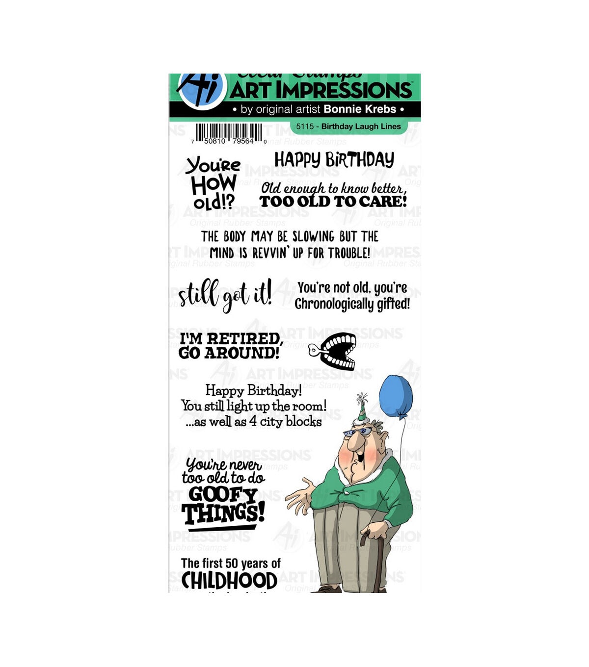 Add wonderful images and phrases to cards and more with these clear stamps! This package contains Birthday Laugh Lines: a set of 12 stamps on a 4x9 inch backing sheet. WARNING: Choking Hazard. Not suitable for children under 3 years. Made in USA.
