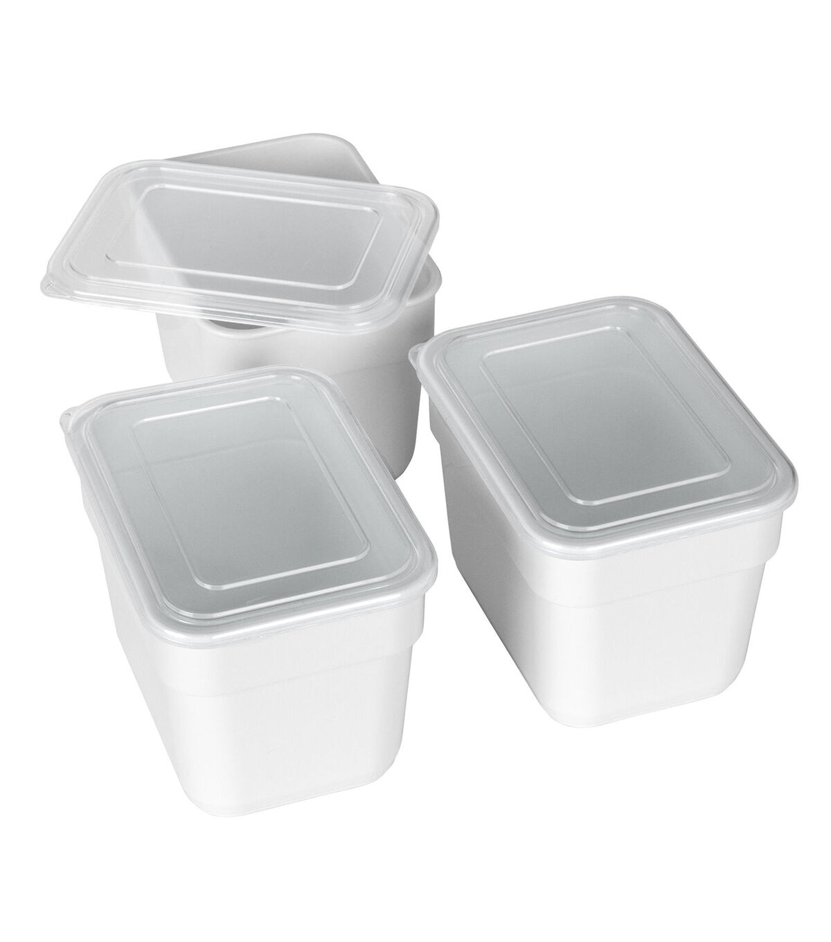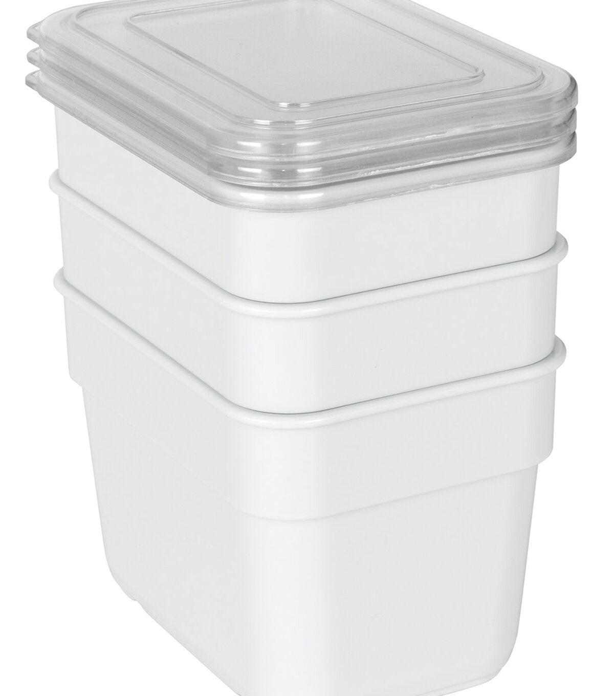 - Product Details: Set of (3) white bins with (3) clear lids. Bins measure 4. 25" x 3. 25" x 3" each.
