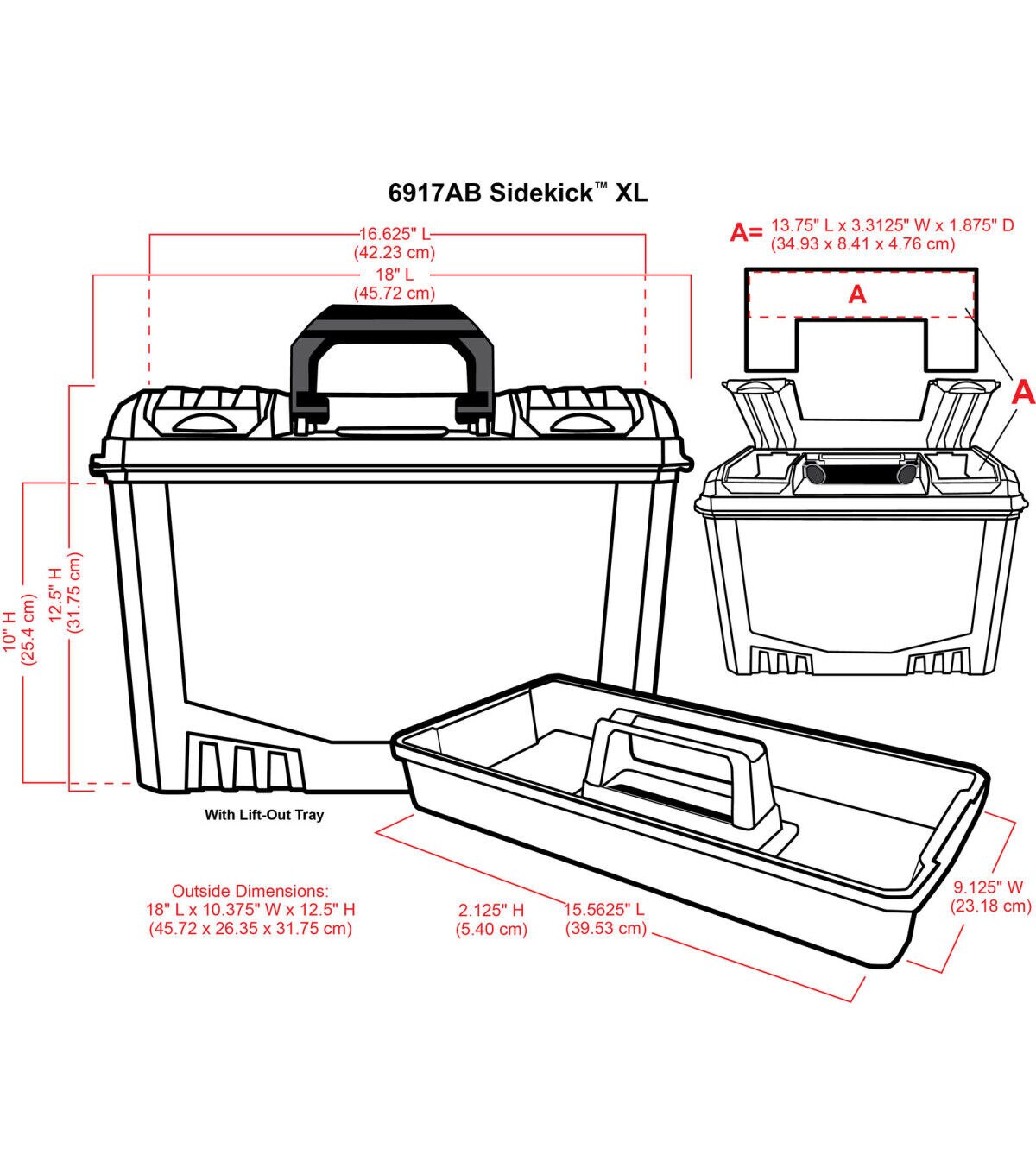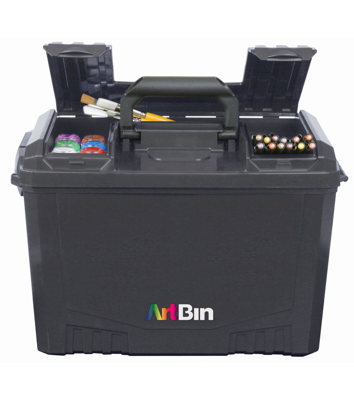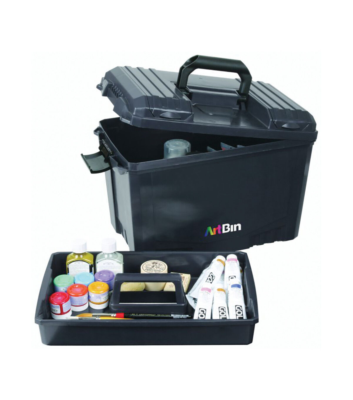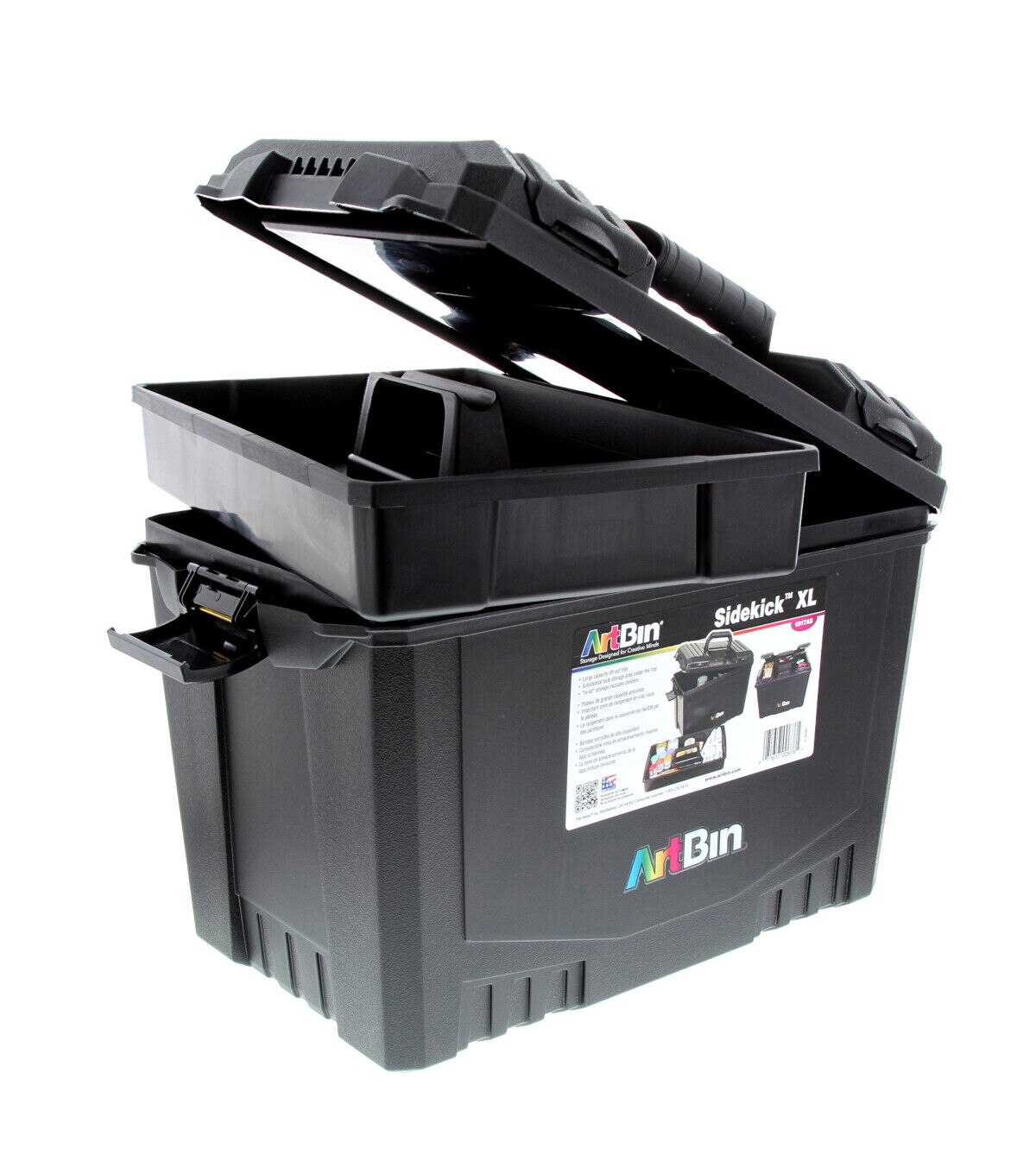 Transport and store supplies safely in this extra-large storage unit. This case features a large capacity lift-out tray and multiple compartments for holding brushes, paints, scissors and other essentials. The lid contains additional storage space for smaller items.