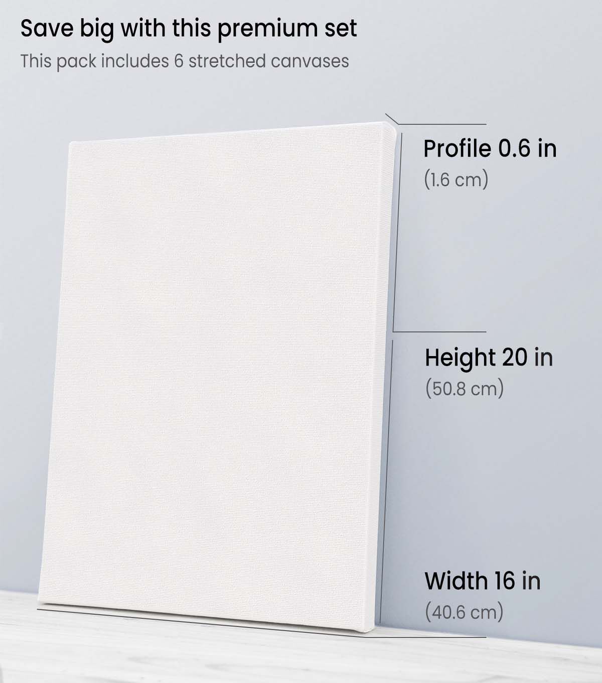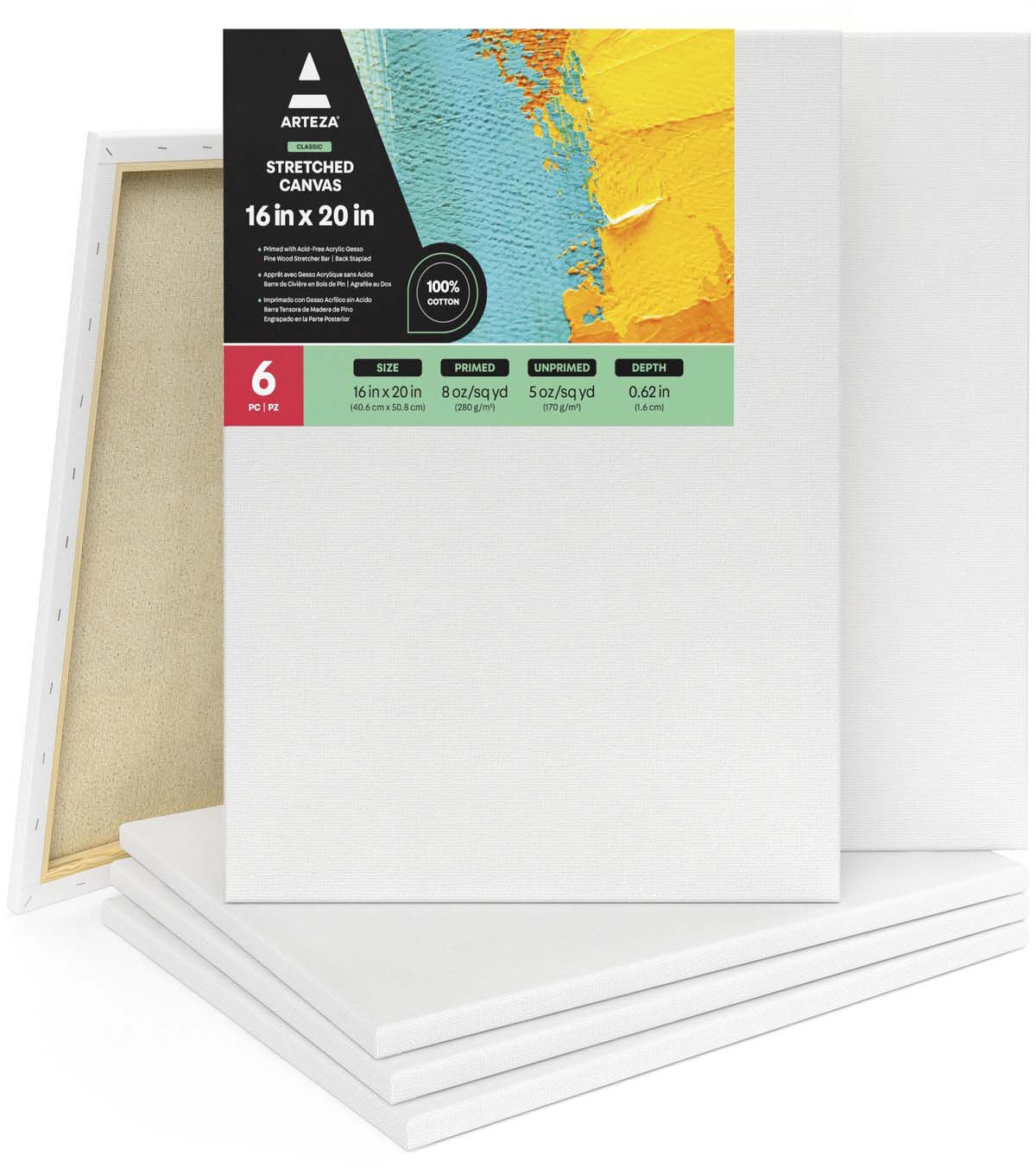 Arteza Classic Stretched Canvas, 16" x 20" - Pack of 6