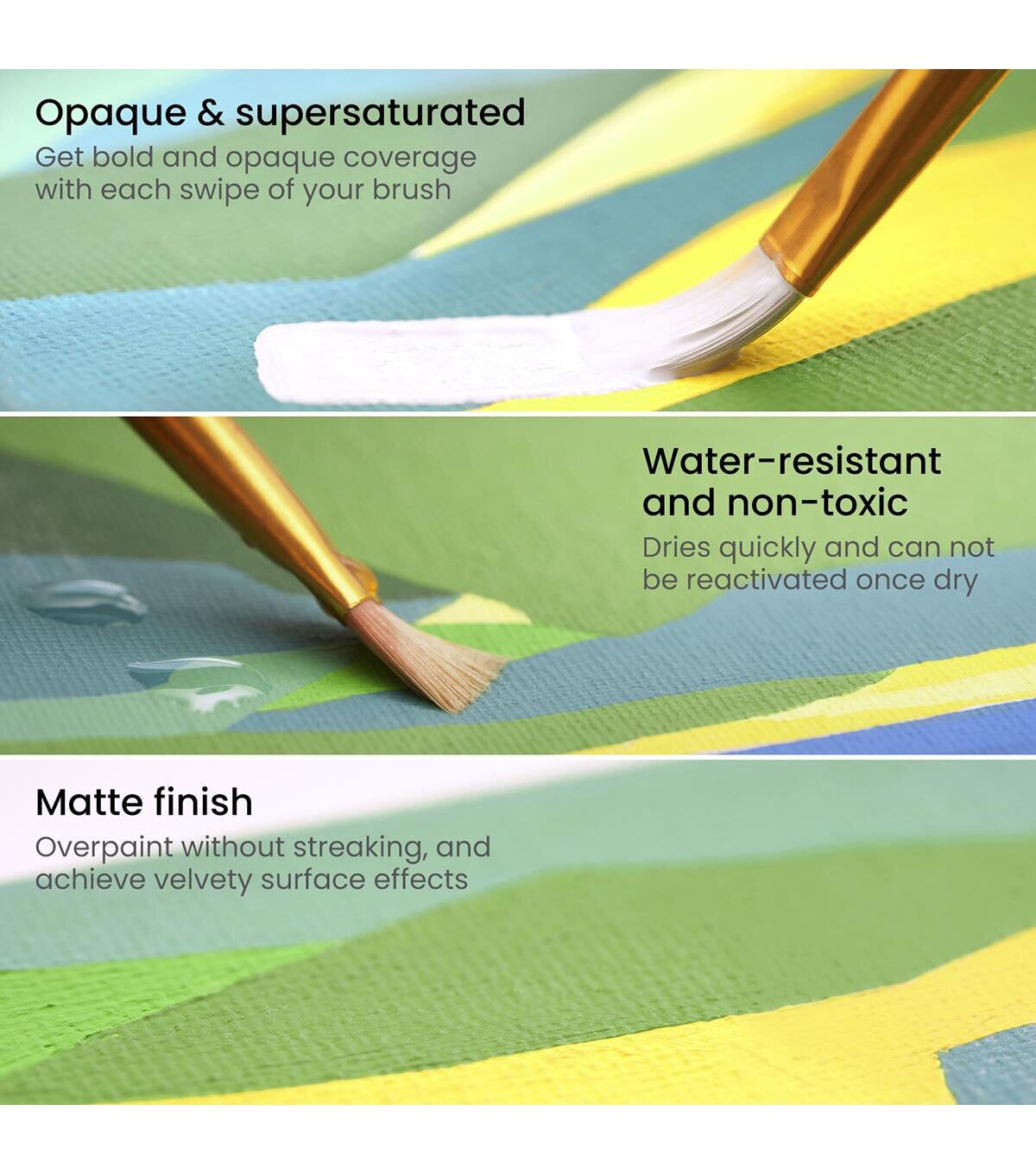 - Unique Medium - These vivid acrylic gouache paints dry down with an opaque and matte finish and are waterproof when dry