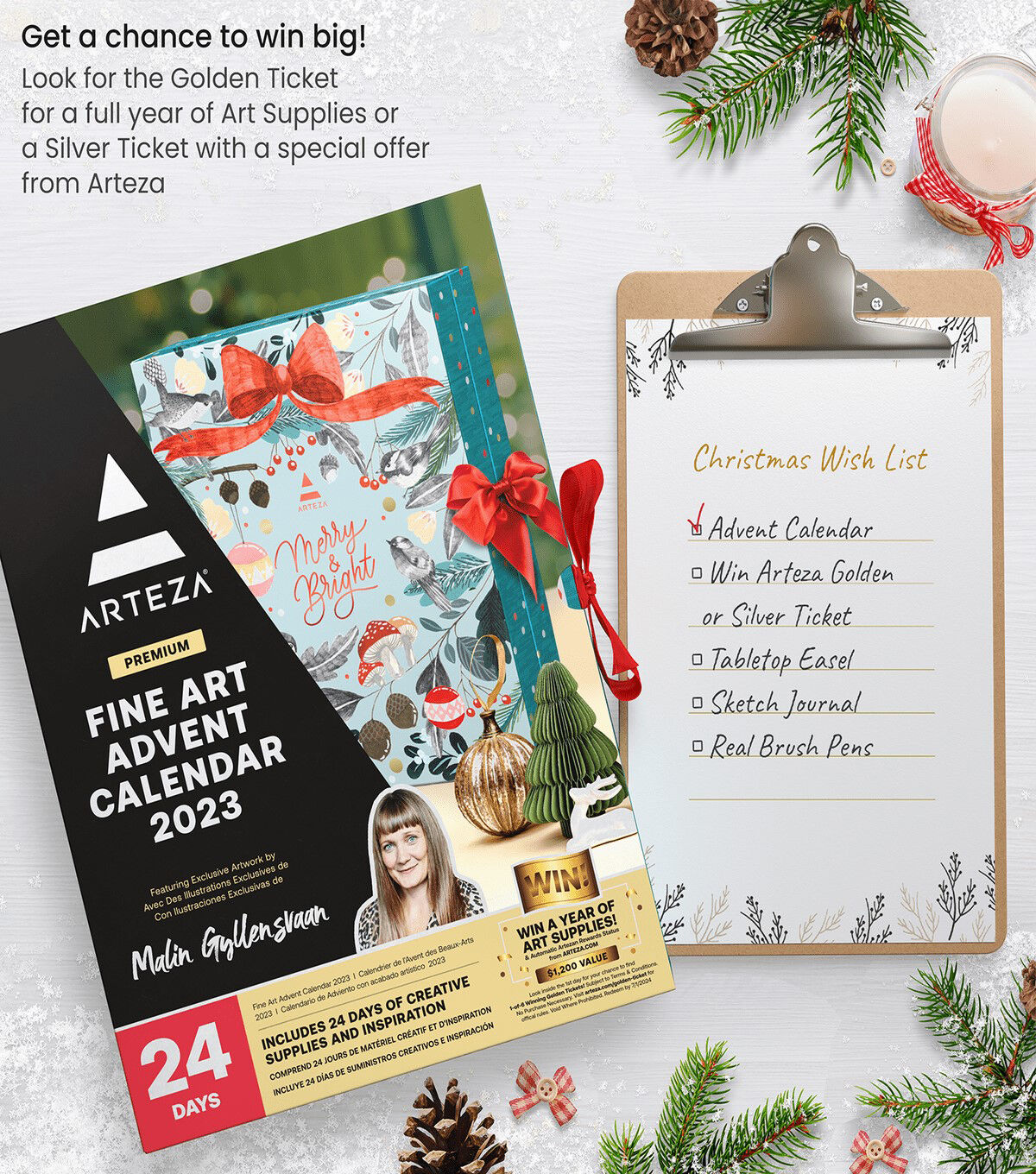 Countdown to the holidays with this 24 Day Advent Calendar! Arteza's artist's advent calendar provides creatives of all ages, disciplines, and backgrounds with new arts and crafts supplies! Celebrate the most wonderful time of the year by creating with some of your favorite supplies. The range of products included in this advent calendar also allows you to explore mediums you may not have used before. Create artwork that truly celebrates the holiday season with this joyous 24 Day Advent Calendar!
