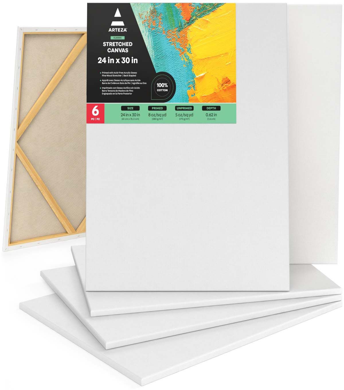 Arteza Classic Stretched Canvas, 24" x 30" - Pack of 6