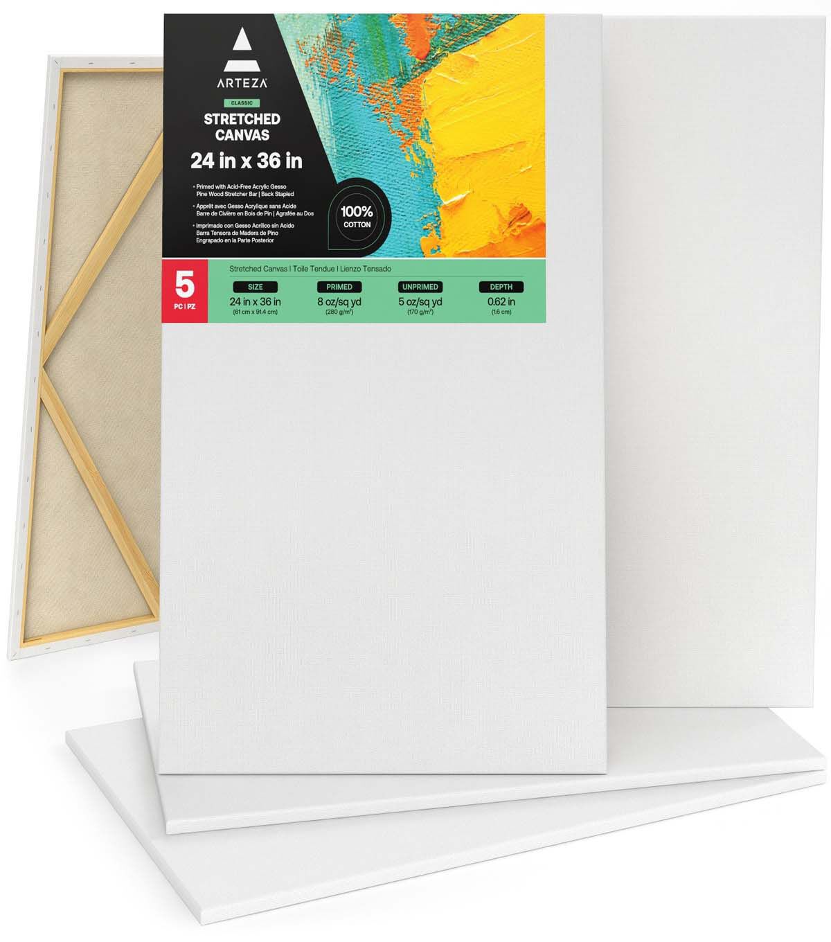 Arteza Classic Stretched Canvas, 24" x 36" - Pack of 5