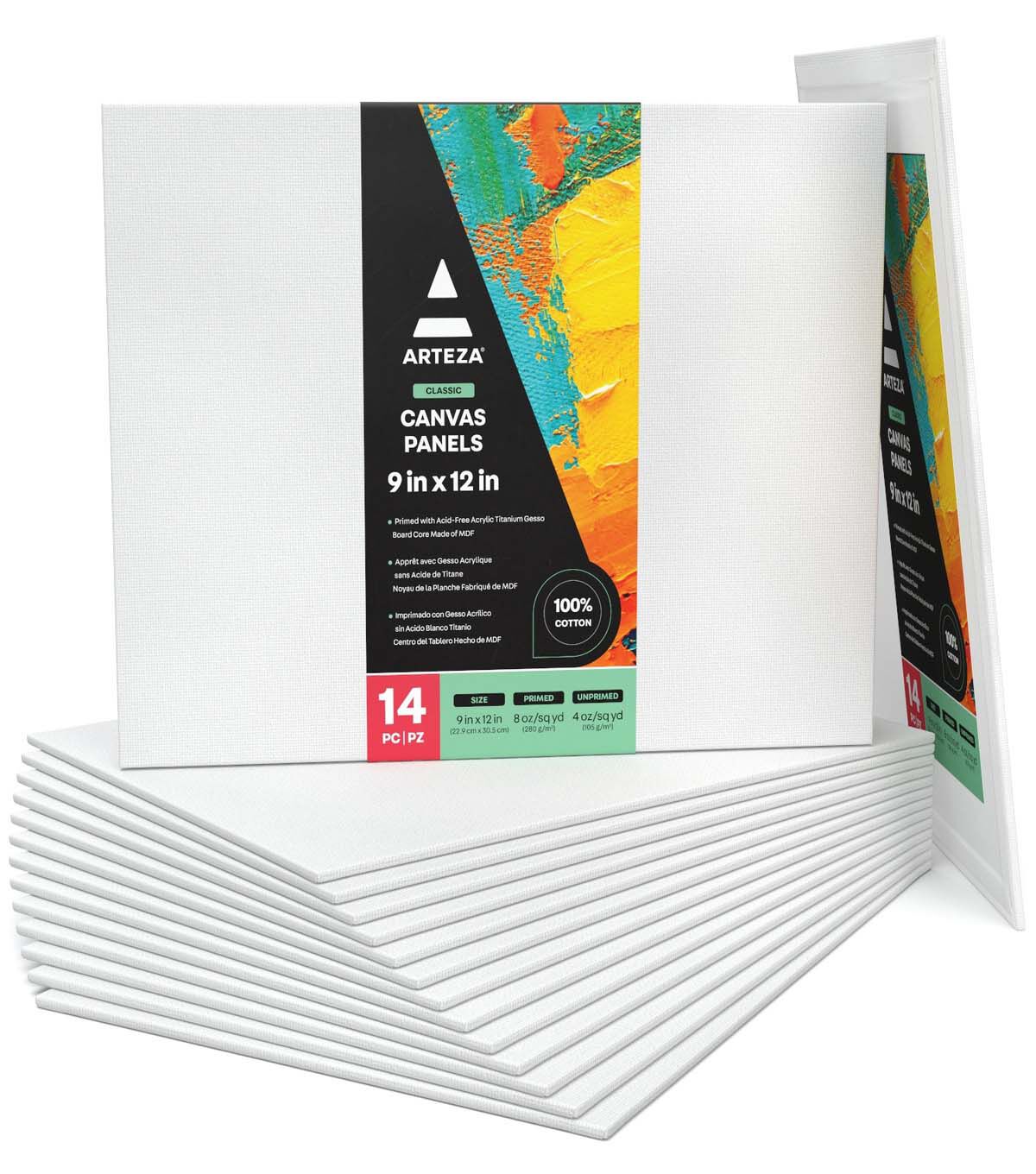 Arteza Classic Canvas Panels, 9" x 12" - Pack of 14