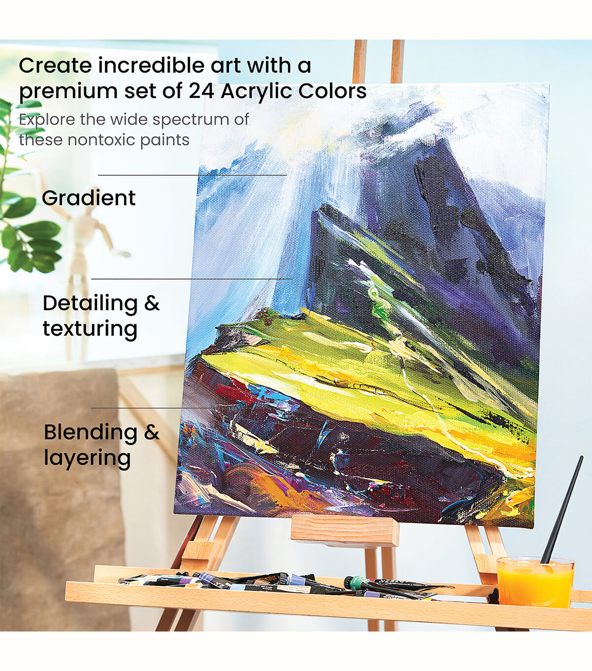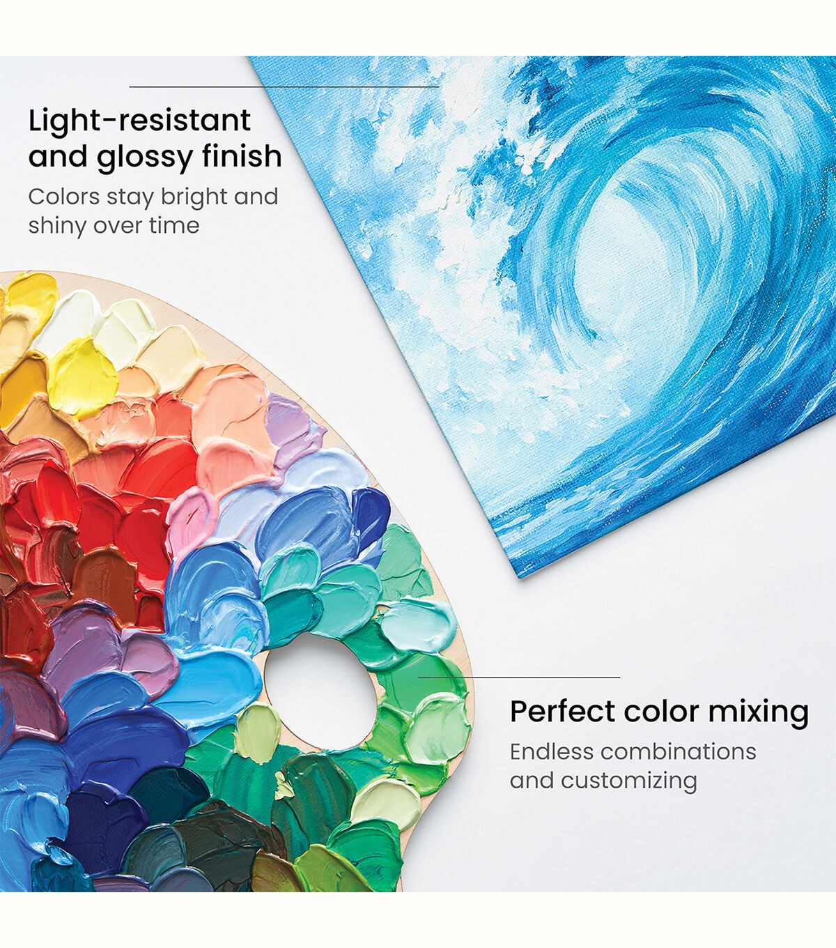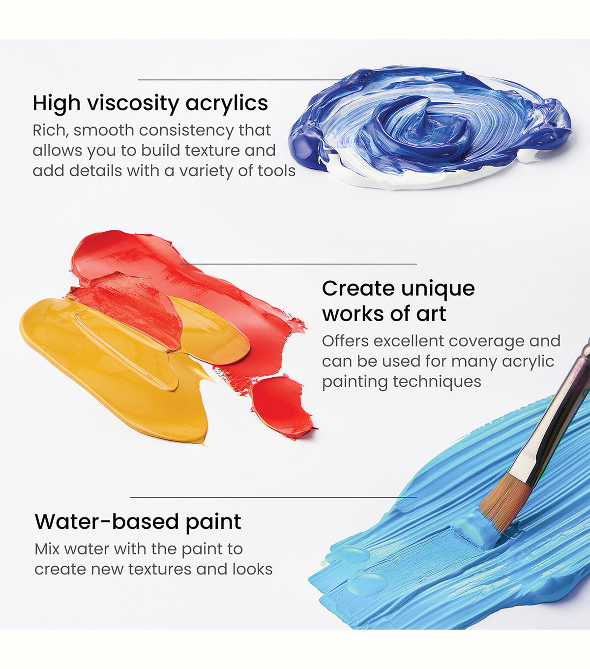 - High Viscosity Acrylics - The thick, smooth consistency is perfect for creating textures with a palette knife or adding details with a small paintbrush