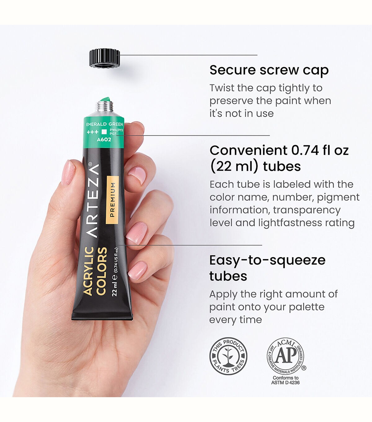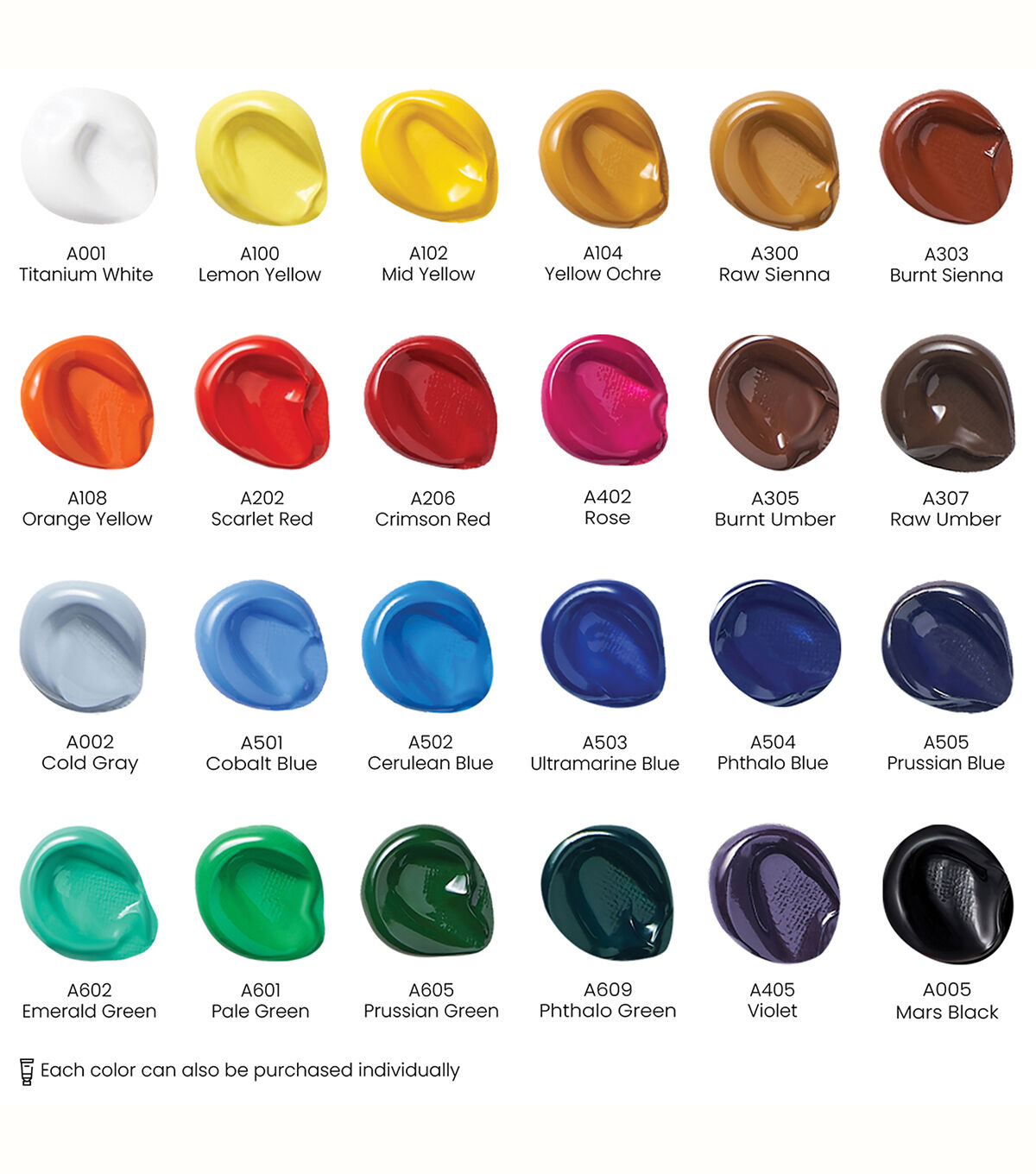 - Easy-to-Squeeze Tubes - Squeeze out the right amount every time; each 0.74 fl oz tube is labeled with the color name/number, pigment information, transparency level, and lightfastness rating