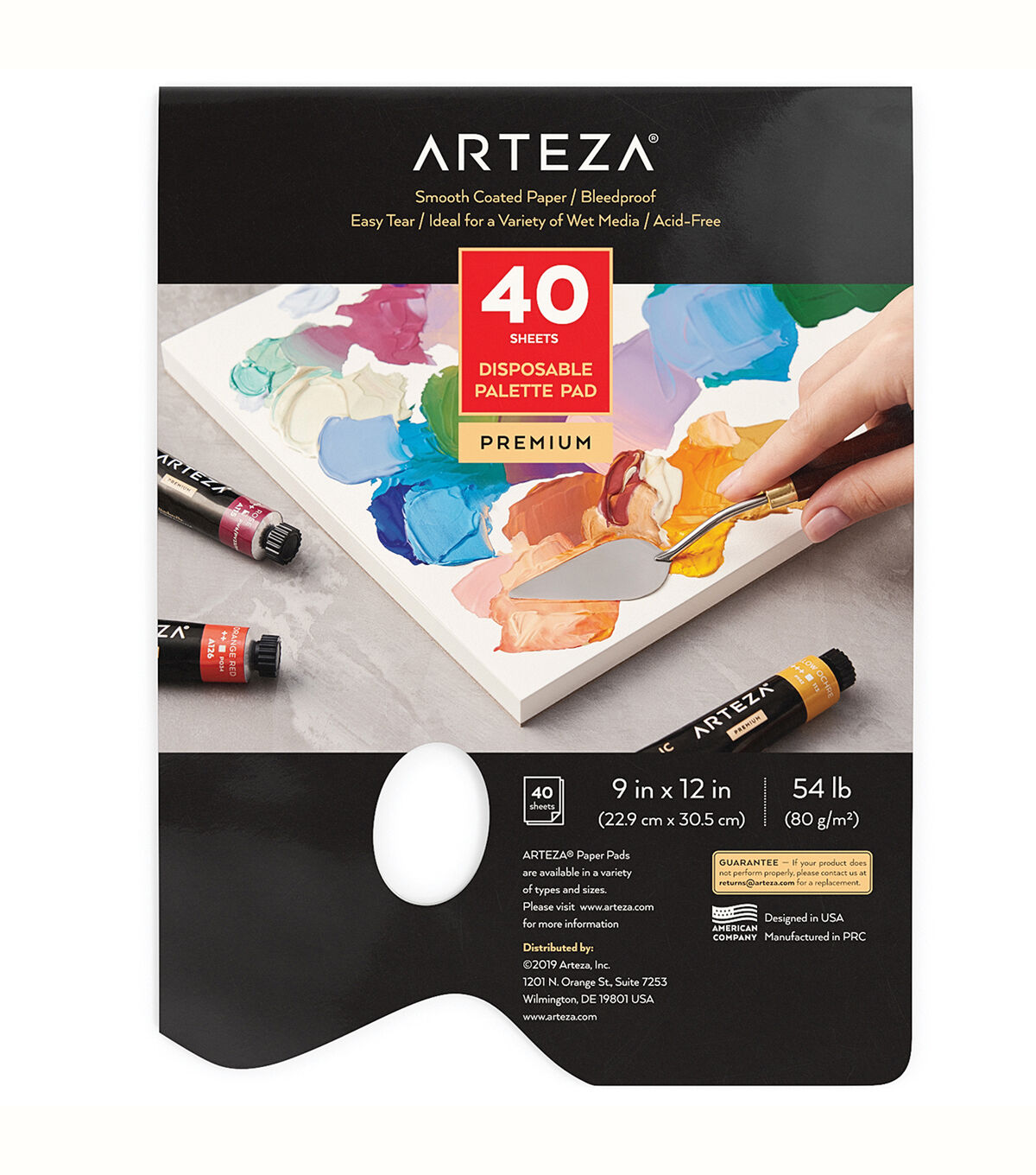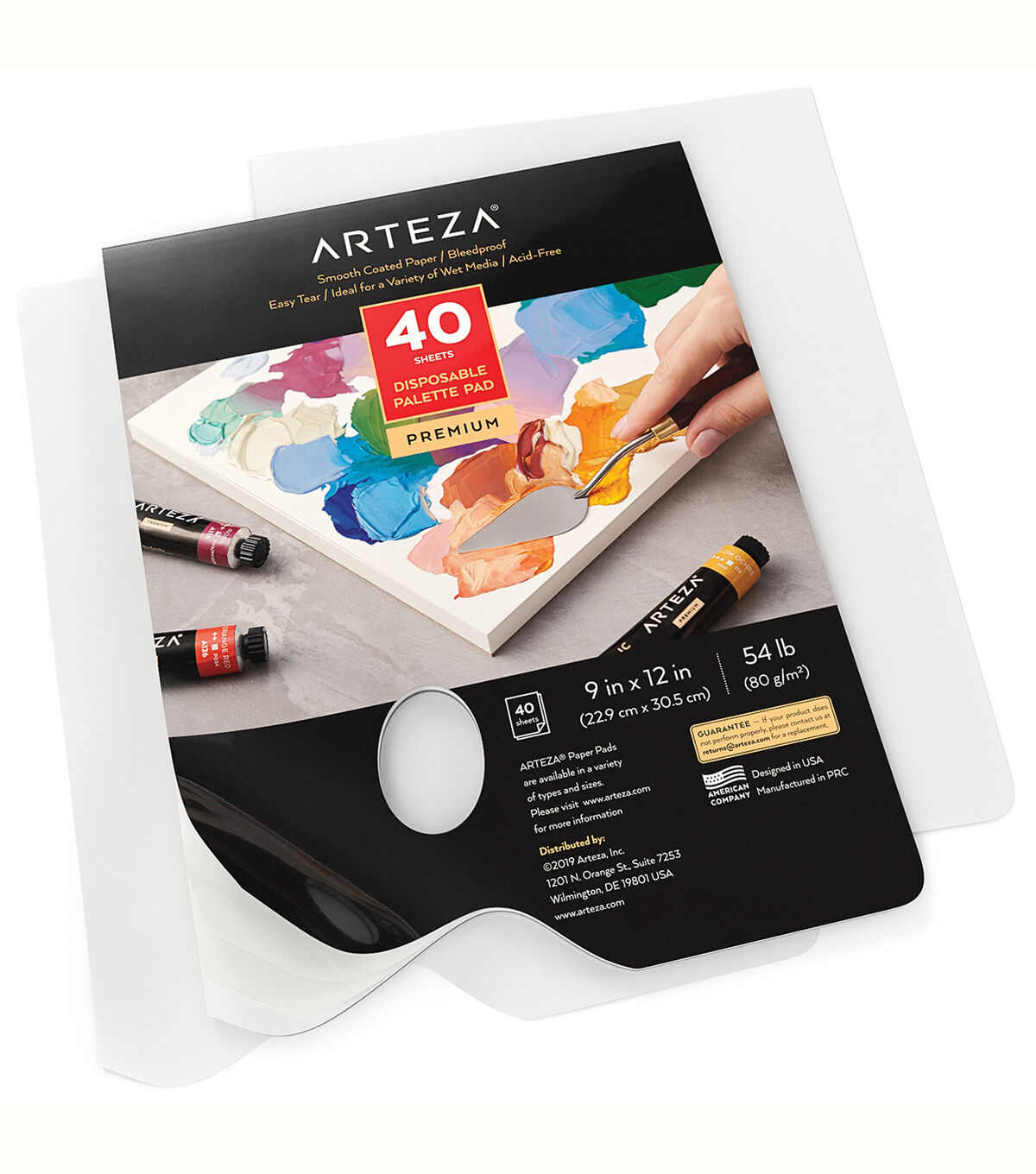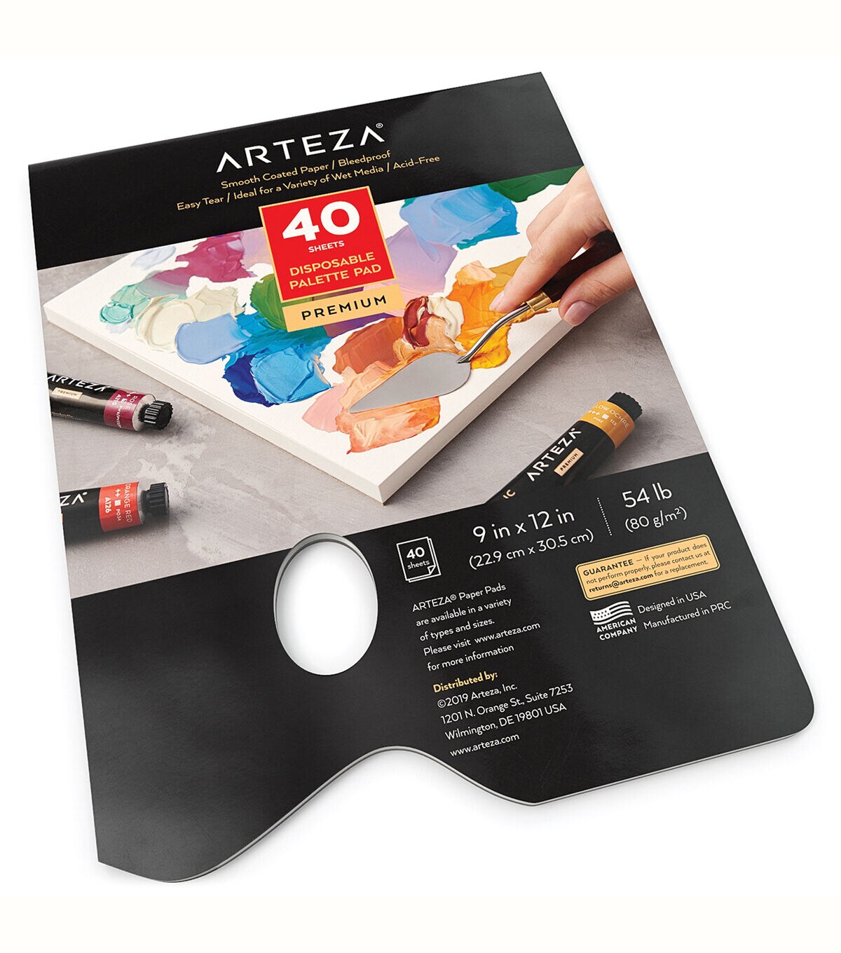 Each glue-bound pad features 40 sheets of 54 lb (80 gsm) smooth-coated paper that you can easily detach. Convenient Thumb Hole Allows you to hold the palette comfortably as you work on your painting. Bleed-Proof & Acid-Free Each page is durable enough to hold media like oil paints acrylics gouache watercolors & more. The lightweight glue-bound pads are perfect for taking on-the-go for plein air painting or simply using in your studio. The 54 lb (80 gsm) bleed-proof pages give you the optimal surface for painting with your favorite media like acrylic oil or gouache. Each smooth-coated page has a white tone so that you’ll be able to see the true shade and texture of the paint before adding it to your piece. Whether you’re mixing paint with traditional paintbrushes or painting with palette knives these pages can withstand whatever blending techniques you want to use.