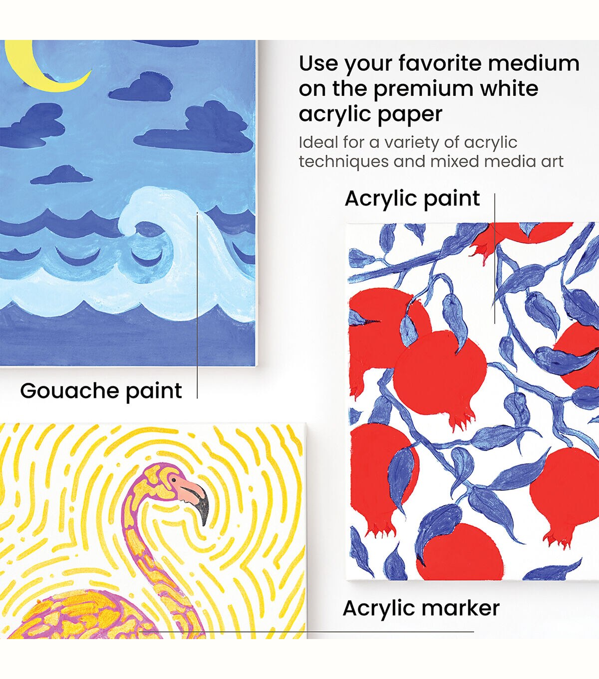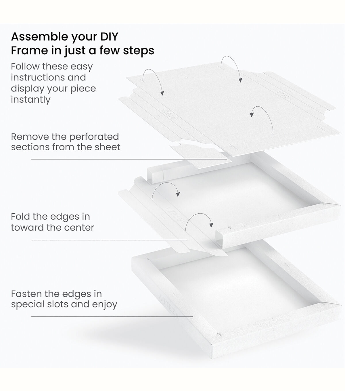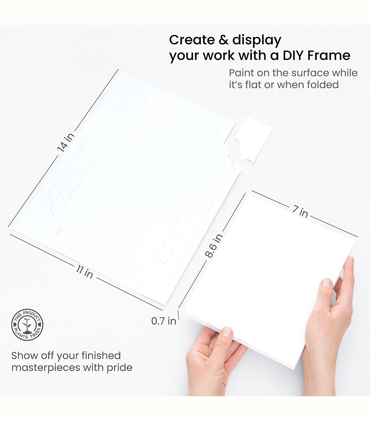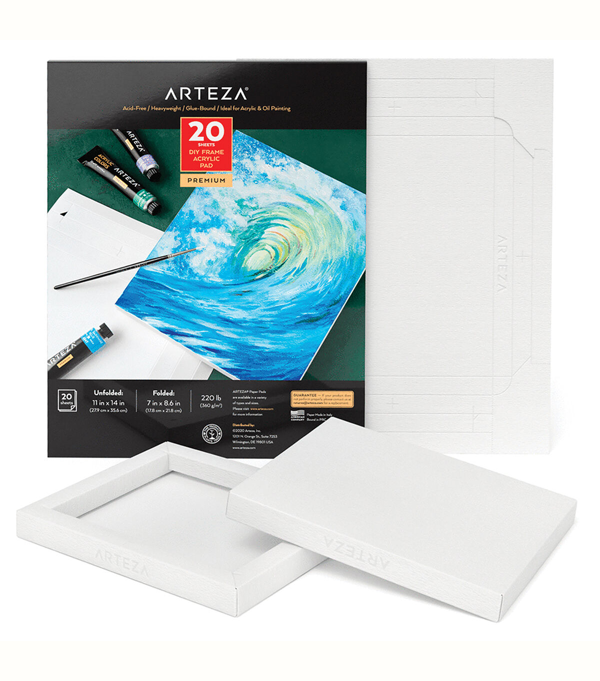 Simply use the folding lines as a guide to create a ready-to-hang piece or use the opposite side as a frame to display your photos. Heavyweight & Bleed-Proof With 220 lb (360 gsm) wood pulp sheets you won’t need to worry about your medium compromising the durability of your surface. Acid-Free Paper You can be confident that your acrylic paintings and designs will remain vibrant over time without yellowing. Glue-Bound Once you’re ready to make a new piece simply tear off the perforated sheet from the pad and start creating. Paint on the back and use it as a little paper surface or flip it around and paint the frame to display photos. You can even paint your piece directly inside the paper frame so that you won’t need to frame it later. Each frame is sturdy when folded and has easy-to-tear sides for when you’re ready to frame your masterpiece. Every sheet comes as a flat surface and is in a glue-bound pad making it easy to store and transport before becoming frames.