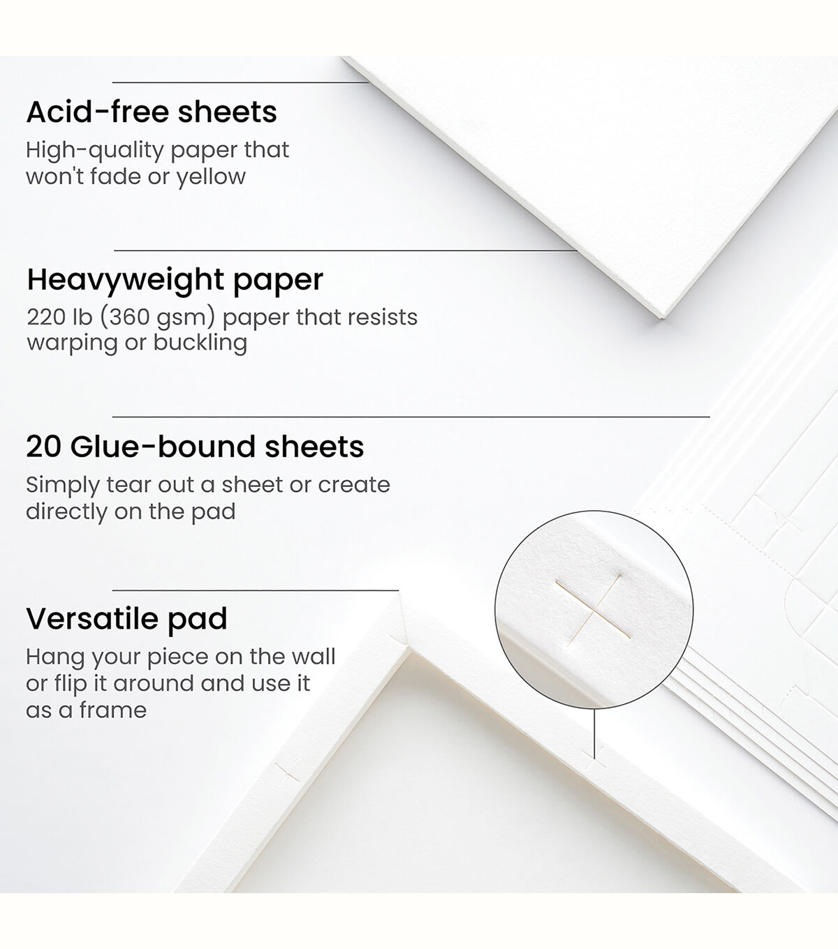 - Heavyweight 220lb(360 gsm) wood pulp sheets won't buckle or warp.