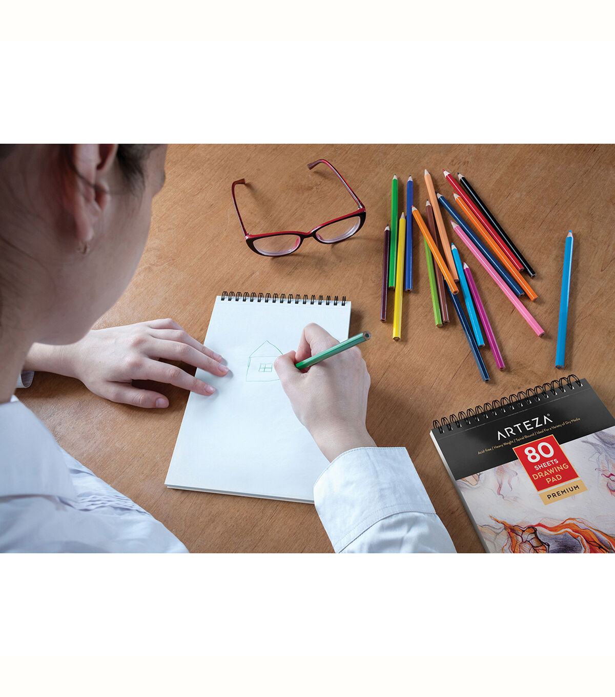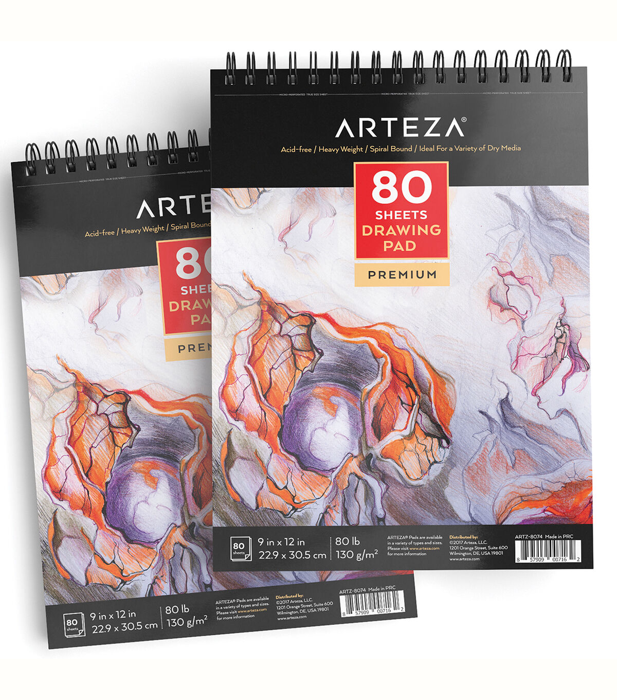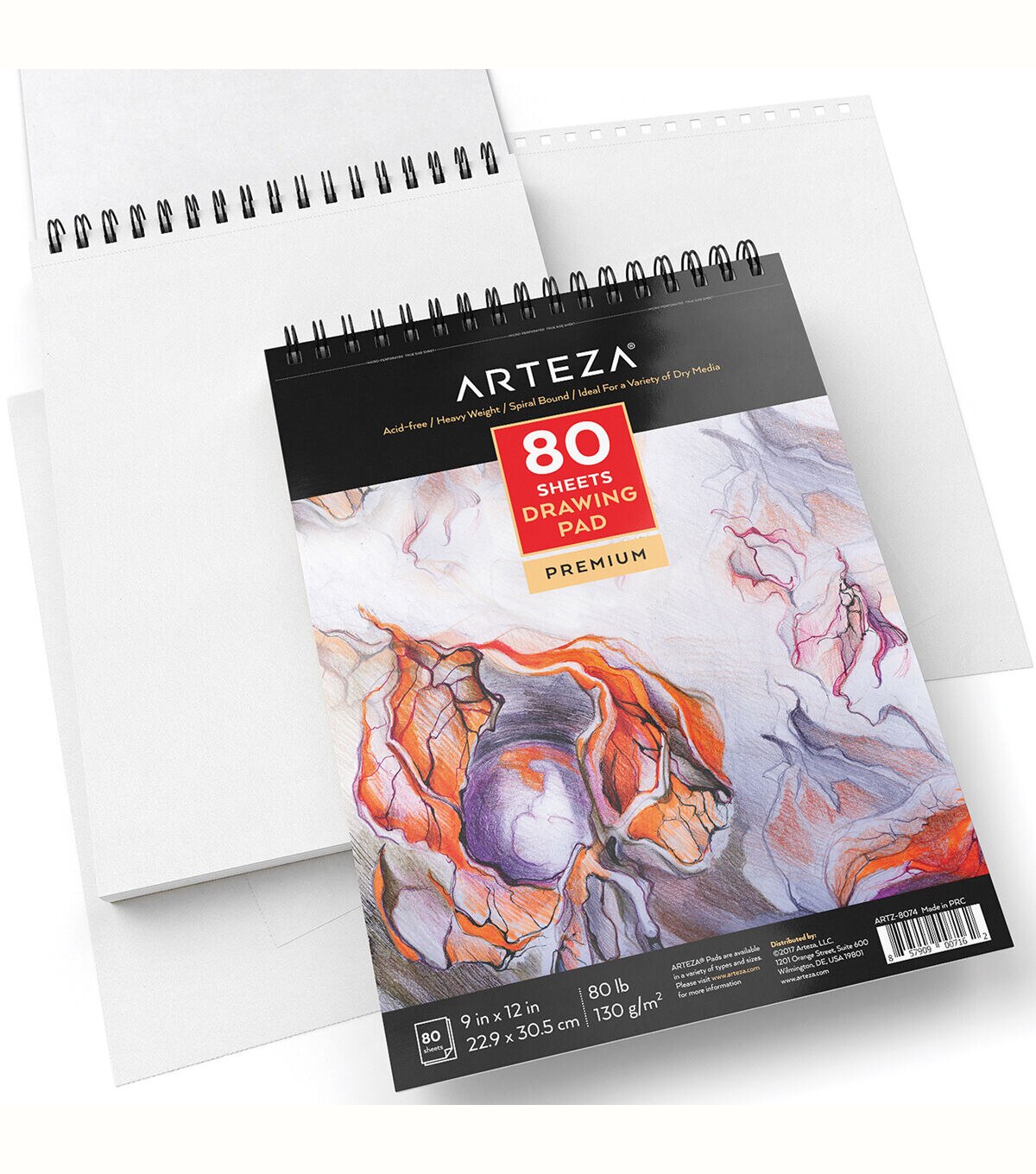 Premium Paper Off-white 80lb smooth acid-free paper with a fine tooth surface ideal for a variety of dry media360° Spiral-Bound Held together by a twin wire loop binding that flips all the way back so you’re working one piece at a time with easeAcid-Free Enjoy colors that will withstand the test of time with paper that prevents hue deteriorationMicro-Perforated Ready to frame your masterpiece? Easily rip out true-to-size sheets and display