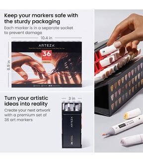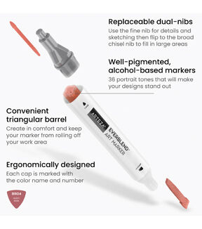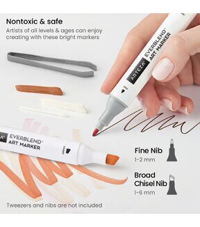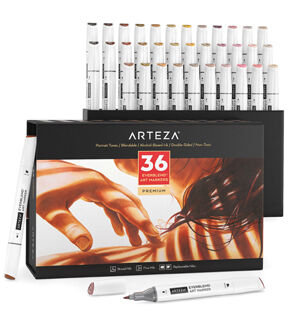 EverBlend Art Markers are a must-have for all artists, crafters, and DIYers. These versatile artist markers are super blendable, feature replaceable nibs, and are double-sided to provide artists with both larger and smaller brush styles. Whether you’re adding your undertone for colored pencil drawings or creating vibrant marker drawings, this is the marker set for you! Add a set of EverBlend Art Markers to your collection to see the difference they make. Conquer portrait drawings of people of all skin tones with Arteza’s EverBlend Art Markers in Portrait Tones. This set of 36 premium artist markers features markers with both chisel and fine tips, so you can easily color and detail your drawings. This set features light, medium, and dark shades with cool, neutral, and warm undertones, to ensure you have every color you need to create realistic portraits. Add more colors into your portrait marker collection with this must-have, professional-grade EverBlend Art Markers Portrait Tones Set of 36.