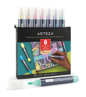 Take on countless DIY and arts and crafts projects with Oil-Based Paint Markers. Oil paint markers are also ideal for creating professional artwork. This super versatile painting marker invites painters to rethink the way they approach their oil paintings. Artists can use paint markers on their own to create vibrant paintings, or alongside their traditional wet media of choice to add details, text, highlights, shadows, and even their signatures to their paintings. Embark on new creative projects with Arteza’s versatile, easy-to-use, quick-drying oil-based paint markers. Produce oil paintings with soft pastel tones using this Oil-based Paint Markers Set of 8. Unlike traditional oil paints, Arteza’s paint markers dry quickly! Create permanent paintings and designs any and everywhere you go with this super portable, premium set of painting markers. Each marker included in this set features a medium bullet nib which creates 2.5 mm lines—which is an ideal size for drawing, outlining, adding text, and patterns. This set of eight includes one marker of each of the following colors: Lemonade Yellow, Orange, Tulip Pink, Orchid Purple, Lavender, Butterfly Blue, Spearmint Green, and Apple Green. Reach new creative heights with this unique Pastels Oil-Based Paint Markers Set!