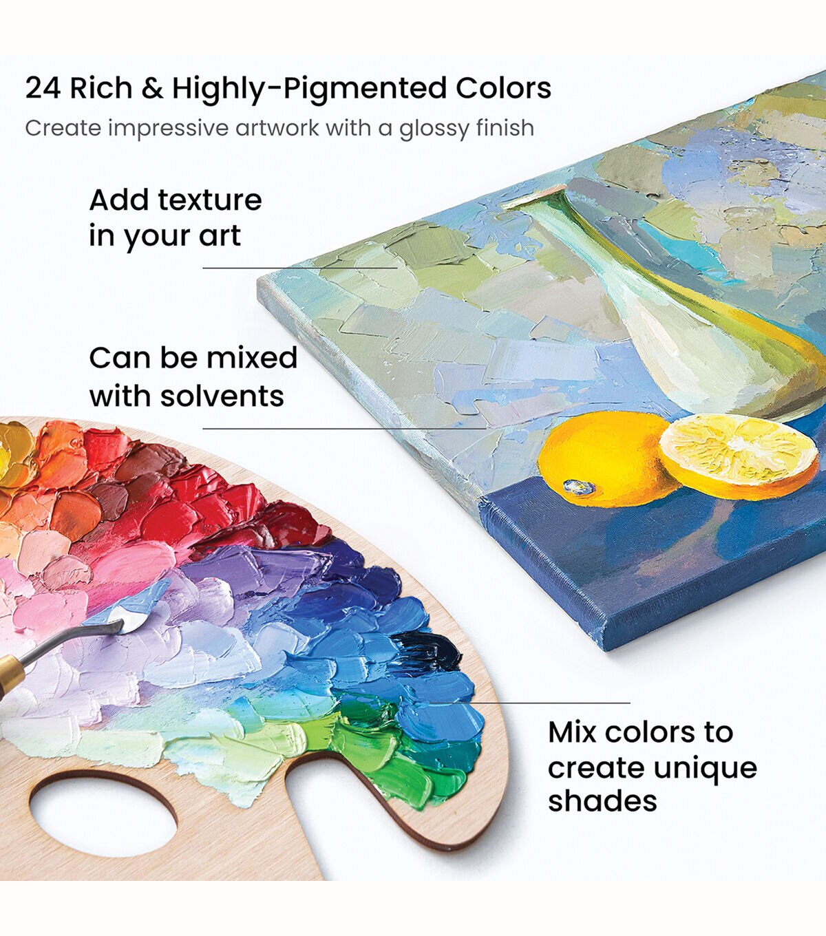 - Rich Vivid Colors – Find a wide spectrum of highly pigmented oil paints