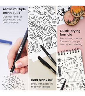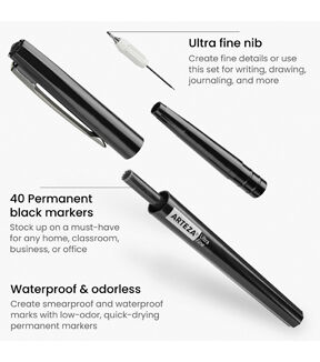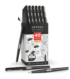Permanent markers are an essential for crafters, artists, DIYers, working professionals, educators, and students. Arteza’s Permanent Marker formula is certified non-toxic and fast-drying, so you don’t ever have to worry about smudges occurring. They offer marker sets with unique colors, to invite an even wider color selection into your marker collection. Conquer everything from outlining your drawings to creating craft pieces to labeling containers with their versatile Permanent Markers. Ensure you’re prepared for the next time you need a permanent marker by stocking up with any of Arteza’s premium permanent marker sets. Write, draw, and doodle in comfort and with confidence with this Black Permanent Markers Set. This marker set comes complete with 40 ultra fine tip permanent markers. The ultra fine tip makes this marker ideal for drawing, illustrating, sketching, writing, designing, journaling, and more! This set of black permanent markers (with ultra fine tips) is also optimal for outlining your marker drawings, paintings, sketches, and mixed media pieces. Invest in this Black Permanent Markers Set of 40 to ensure you always have a reliable, fine tip, black marker handy.
