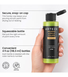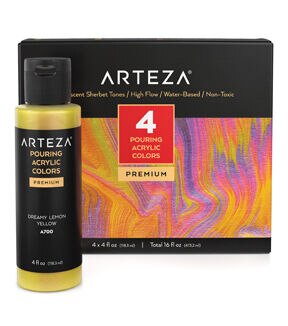 Painting is completely stress-free when you’re working with pouring paints. Arteza’s Pouring Acrylic Paints are pre-mixed and ready to pour, to save you the extra time. Their high-flow, water-based paints are easy to use, simply shake the bottle, pour your colors into a cup, then pour that cup onto your creative surface. Add unique patterns and designs to canvas panels, stretched canvases, wood slices, ceramic pieces, and more! Any and everyone is invited to join in on the fun of painting with pouring paints. Create paintings with eye-catching colors with this Iridescent Sherbet Tones Pouring Acrylic Paint Set. Each 4 fl oz bottle of high-flow pouring paint included in this paint set features a secure snap-on cap, to keep your paints fresh. Produce plenty of paintings or add a colorful design on craft pieces with this water-based pouring acrylic paint. Arteza’s Iridescent Sherbet Tones Pouring Acrylic Paint Set includes the colors Shady Orange, Shocking Lime Green, Dreamy Lemon Yellow, and Electric Plum Purple. Create museum-worthy pour paintings with this premium pouring paint set!