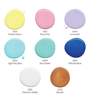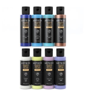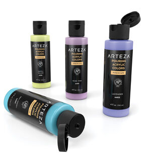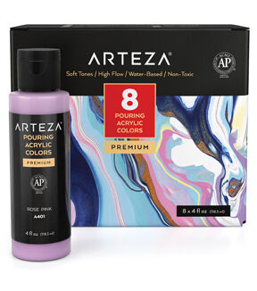 Painting is completely stress-free when you’re working with pouring paints. Arteza’s Pouring Acrylic Paints are pre-mixed and ready to pour, to save you the extra time. Their high-flow, water-based paints are easy to use, simply shake the bottle, pour your colors into a cup, then pour that cup onto your creative surface. Add unique patterns and designs to canvas panels, stretched canvases, wood slices, ceramic pieces, and more! Any and everyone is invited to join in on the fun of painting with pouring paints. Produce paintings with beautiful soft tones with this Pouring Acrylic Paint Set of 8. This acrylic paint set includes 4 fl oz of each of the following colors: Titanium White, Pastel Yellow, Rose Pink, Lavender, Phthalo Blue, Light Sky Blue, Sea Green, and Bronze. Use this pouring paint set to create paintings with colors that represent the ocean, cotton candy, Springtime, and more. Explore the many different pouring acrylic paint techniques you can use to create one-of-a-kind masterpieces with this Soft Tones Pouring Acrylic Paint Set!