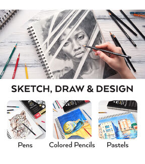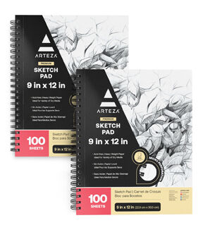 Bring your creative ideas to life with a 2-pack of 9"x12" cardboard cover sketchbooks. Each book contains 100 blank sheets that are perfect for a variety of dry media like drawing pencils, pastels, charcoal, gel ink pens, colored pencils, and more. Easily erase, revise, and layer your media without having to worry about the paper getting torn, as the fine-tooth 68 lb sheets are durable and able to handle whatever technique you’d like to use. The pages are acid-free, so your designs will stay fresh and vibrant over time. Each sheet is also perforated and can be easily removed from your sketchbook whenever you’re ready to display your work. The flexible spiral binding allows you to rotate your pages all the way back so that you can either create on a flat two-page spread or work on a single page at a time. With this convenient 2-pack, you’ll always have a premium sketchbook in hand every time inspiration arrives.