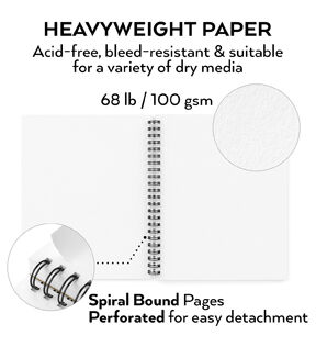 - Easy-to-Remove Pages: These sketch books are spiral bound, so you can turn pages smoothly & easily. Plus, every page is perforated, so you can detach it cleanly & safely. Ideal for field art & travel.