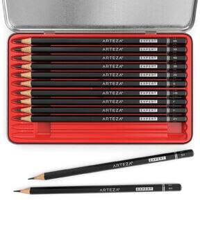 This pack of 12 expert drawing pencils will help you to elevate your drawings, sketches, and illustrations. The professional drawing pencils included in this set come in varying degrees of hardness, to provide you with every pencil you need to create a masterpiece. This extensive professional drawing pencils set comes with 6B, 5B, 4B, 3B, 2B, B, HB, F, H, 2H, 3H, and 4H. With such a wide range of graphite pencils, drawing exactly what you envision is now easier than ever before. The break resistant cores offer you high-density graphite which minimizes the number of broken points you encounter.