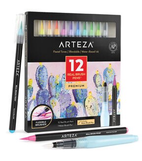 Real Brush Pens are the ultimate watercolor marker! Create detailed marker drawings and produce gorgeous watercolor effectors all with our must-have paint pen. You don’t need a canvas to produce museum-worthy paintings with this set of brush pens, simply grab your watercolor paper and water brush pen or watercolor brush! Invite more color and versatility into your collection with Real Brush Pens. Produce watercolor paintings and marker drawings with alluring pastel tones with this Real Brush Pens Set of 12. This premium watercolor marker set comes complete with 12 markers and a water brush pen. Water brush pens hold the water in their barrel so artists can simply squeeze the pen to get the desired water distributed to their paper or canvas. The water-based ink that fills Arteza’s Real Brush Pens is super blendable so painters of all ages and skill sets can create immersive watercolor effects effortlessly. Take your watercolor paintings and marker drawings to the next level, start by making this Pastel Tones Real Brush Pens Set yours!